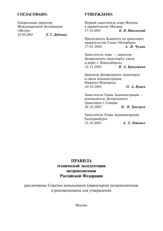 Правила технической эксплуатации метрополитенов Российской Федерации