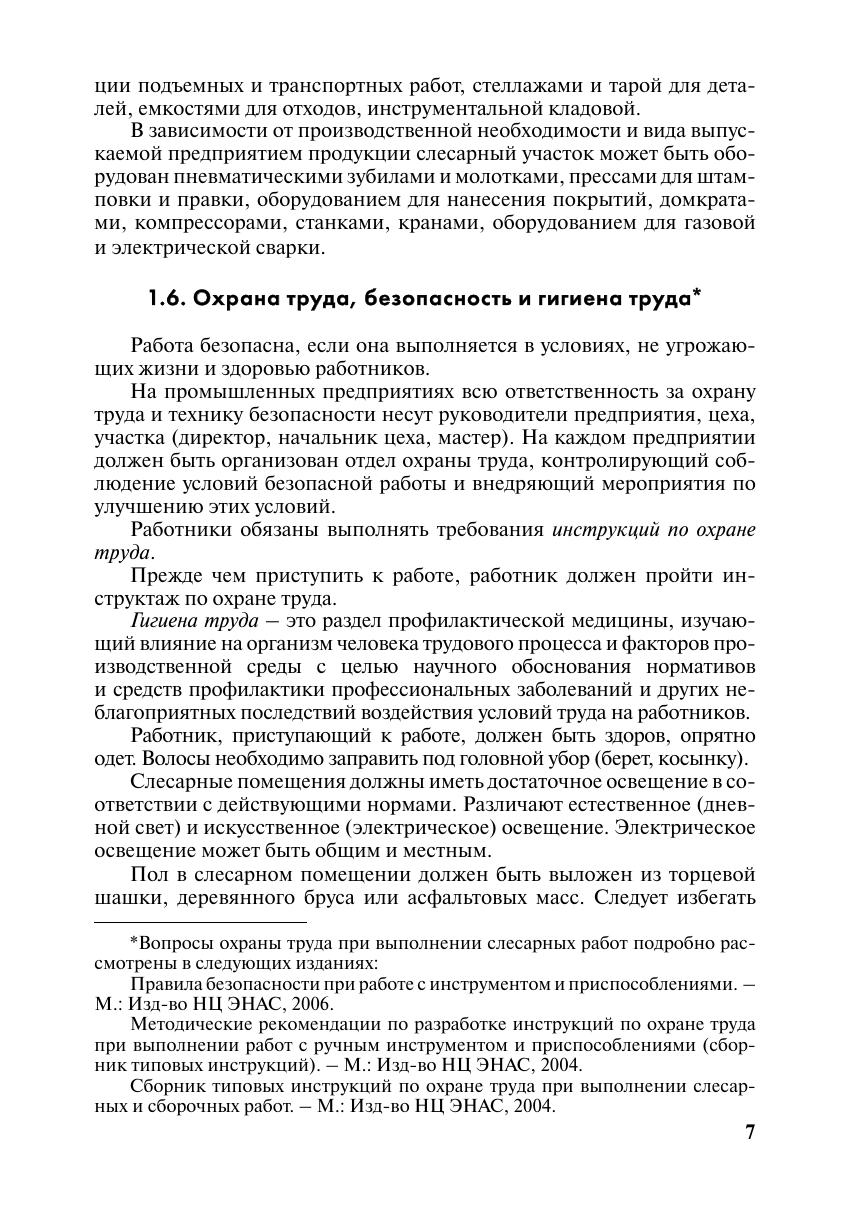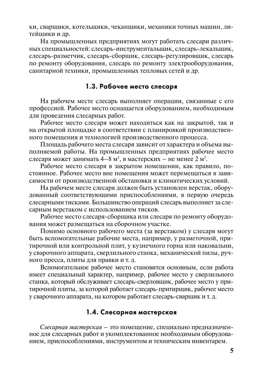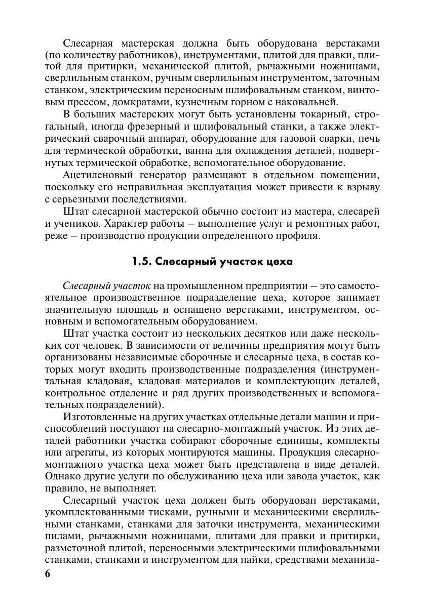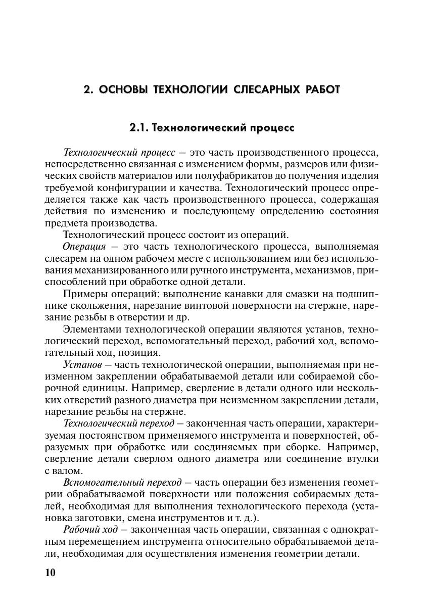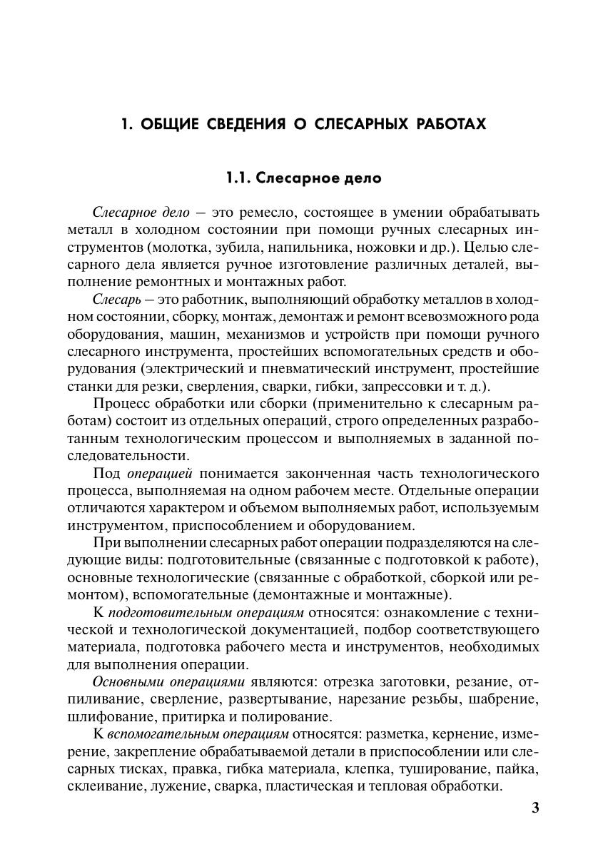 Пособие содержит необходимые сведения по технологии слесарных работ, включая все основные операции при изготовлении металлических изделий, монтаже, демонтаже и ремонте оборудования. Приведены рекомендации по использованию материалов, основного и вспомогательного инструмента, оборудования, средств технических измерений, по организации выполнения работ и оборудованию рабочих мест. Рассмотрены вопросы охраны труда и производственной санитарии.В пособие включены также краткие общие сведения по металловедению и металлообработке, сварочному делу, допускам и посадкам, технике измерений. Пособие предназначено для профессиональной подготовки и повышения квалификации слесарей, учащихся ПТУ и УКК, а также для мастеров и инженерно-технического персонала.