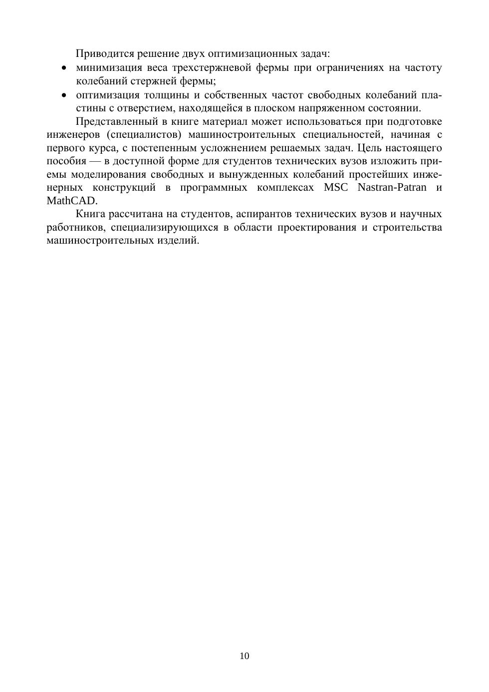 Пособие знакомит читателя с технологиями компьютерного проектирования и расчета струн, стержней, балок и пластин в программном продукте MathCAD и в системе инженерного анализа и оптимизации MSC Nastran с пре- и постпроцессором MSC Patran. Книга рассчитана на студентов и аспирантов технических вузов, а также на научных работников, специализирующихся в области проектирования и строительства машиностроительных изделий.
