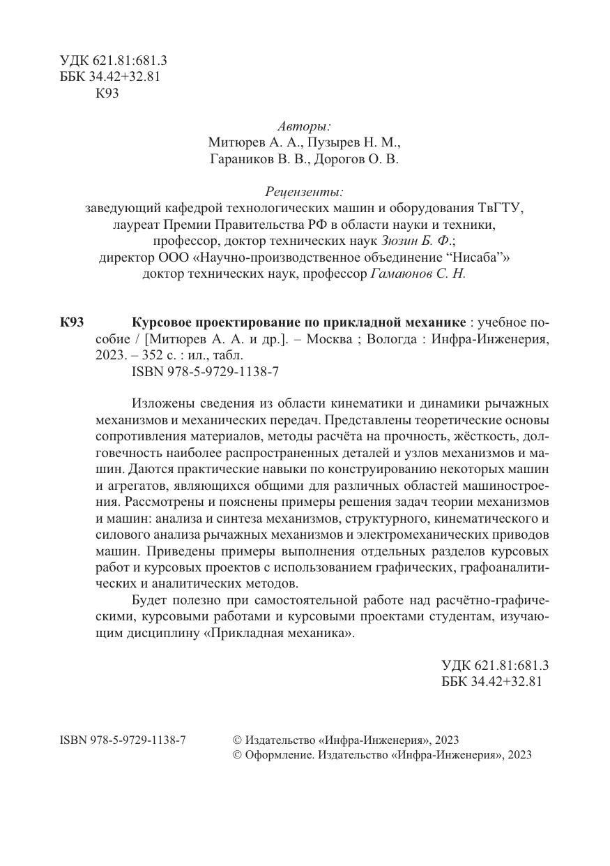 Изложены сведения из области кинематики и динамики рычажных механизмов и механических передач. Представлены теоретические основы сопротивления материалов, методы расчёта на прочность, жёсткость, долговечность наиболее распространенных деталей и узлов механизмов и машин. Даются практические навыки по конструированию некоторых машин и агрегатов, являющихся общими для различных областей машиностроения. Рассмотрены и пояснены примеры решения задач теории механизмов и машин: анализа и синтеза механизмов, структурного, кинематического и силового анализа рычажных механизмов и электромеханических приводов машин. Приведены примеры выполнения отдельных разделов курсовых работ и курсовых проектов с использованием графических, графоаналитических и аналитических методов.