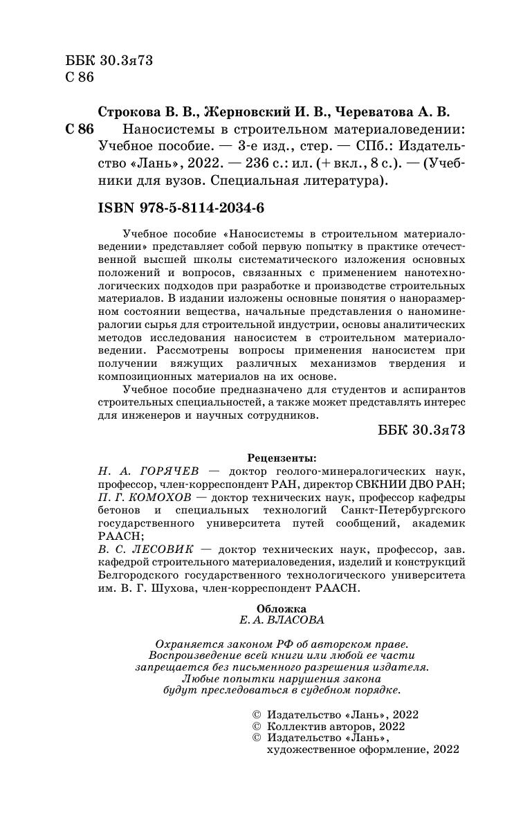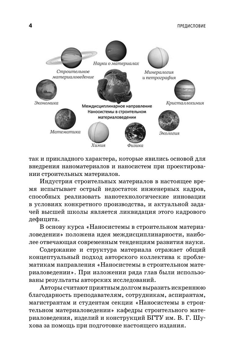 Учебное пособие «Наносистемы в строительном материаловедении» представляет собой первую попытку в практике отечественной высшей школы систематического изложения основных положений и вопросов, связанных с применением нанотехнологических подходов при разработке и производстве строительных материалов. В издании изложены основные понятия о наноразмерном состоянии вещества, начальные представления о наноминералогии сырья для строительной индустрии, основы аналитических методов исследования наносистем в строительном материаловедении. Рассмотрены вопросы применения наносистем при получении вяжущих различных механизмов твердения и композиционных материалов на их основе. Учебное пособие предназначено для студентов и аспирантов строительных специальностей, а также может представлять интерес для инженеров и научных сотрудников.
