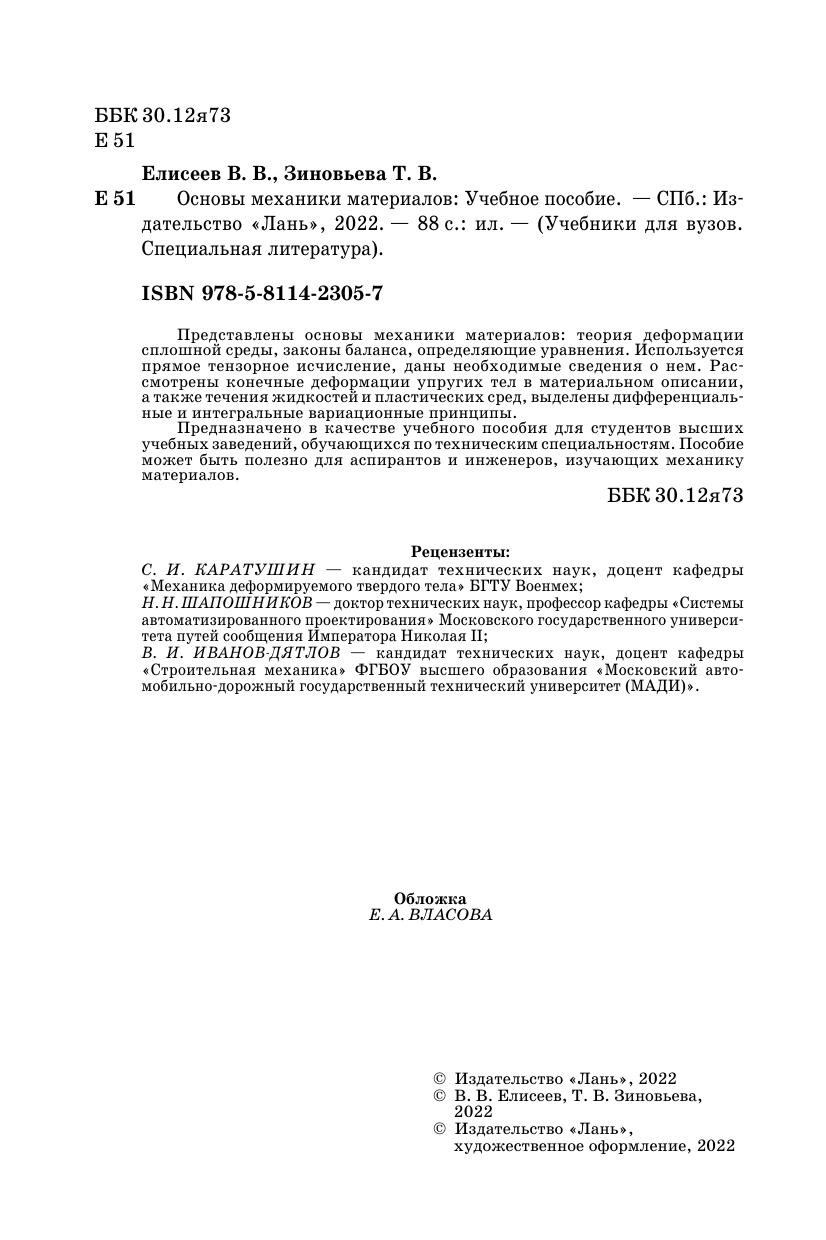 Представлены основы механики материалов: теория деформации сплошной среды, законы баланса, определяющие уравнения. Используется прямое тензорное исчисление, даны необходимые сведения о нем. Рассмотрены конечные деформации упругих тел в материальном описании, а также течения жидкостей и пластических сред, выделены дифференциальные и интегральные вариационные принципы. Предназначено в качестве учебного пособия для студентов высших учебных заведений, обучающихся по техническим специальностям. Пособие может быть полезно для аспирантов и инженеров, изучающих механику материалов.