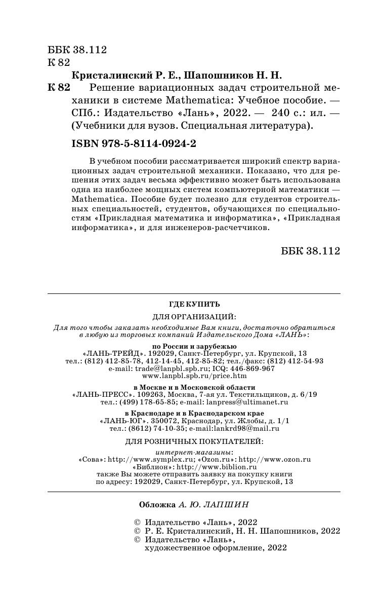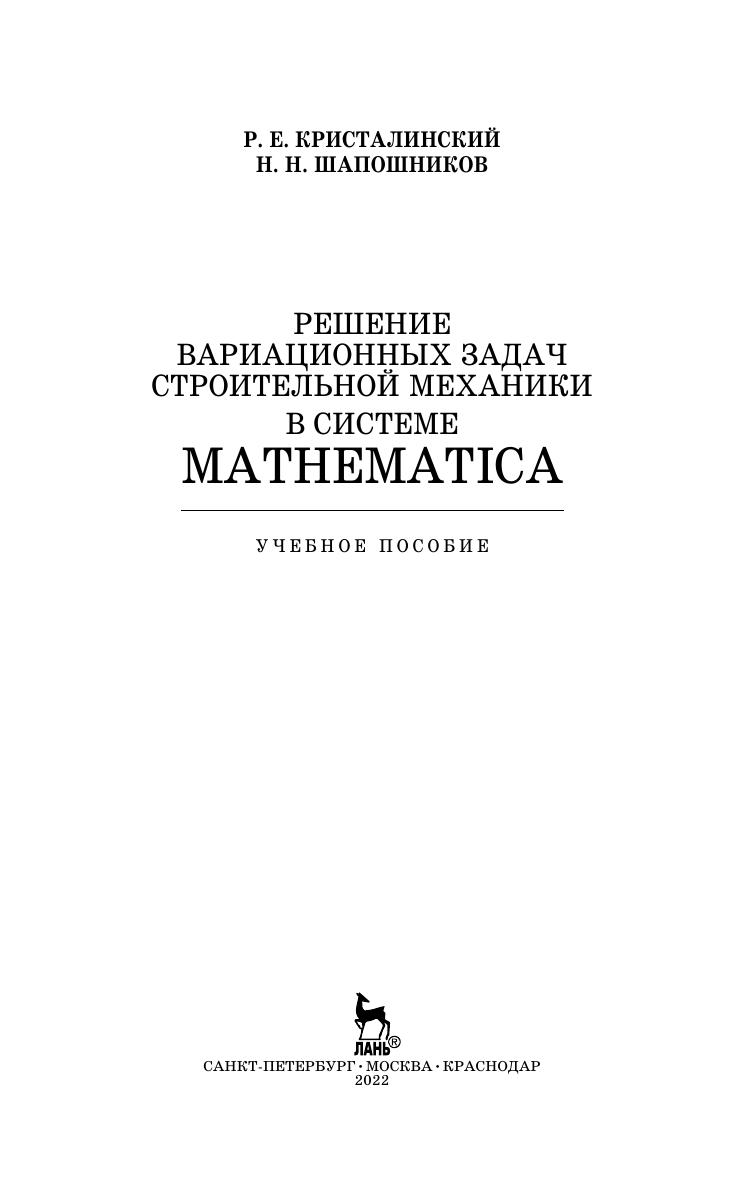 В учебном пособии рассматривается широкий спектр вариационных задач строительной механики. Показано, что для решения этих задач весьма эффективно может быть использована одна из наиболее мощных систем компьютерной математики — Mathematica. Пособие будет полезно для студентов строительных специальностей, студентов, обучающихся по специальностям «Прикладная математика и информатика», «Прикладная информатика», и для инженеров-расчетчиков.