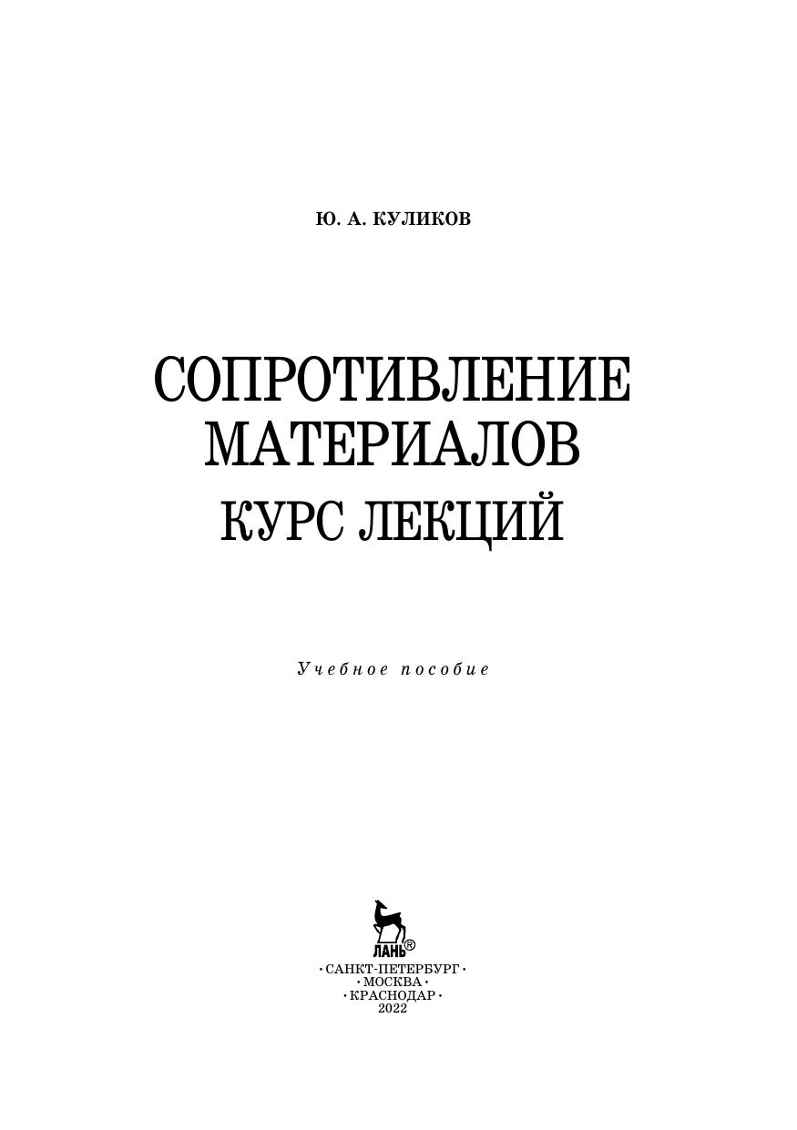 Книга содержит материал 19 оригинальных лекций по курсу «Сопротивление материалов». Лекции отражают многолетний опыт работы автора и отвечают требованиям государственных образовательных стандартов для технических и технологических специальностей вузов. В компактной и лаконичной форме изложены теоретические основы курса и представлены практические методы расчета на прочность, жесткость и устойчивость типовых элементов машин и конструкций. Пособие предназначено для студентов технических и технологических специальностей высших учебных заведений, изучающих дисциплину «Сопротивление материалов», может быть использовано при изучении дисциплин «Механика», «Прикладная механика».