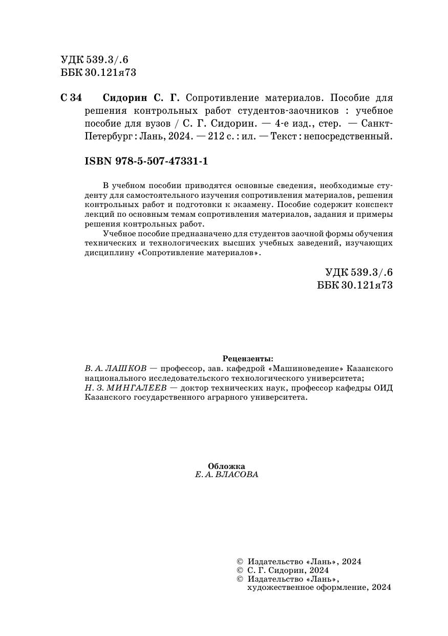 В учебном пособии приводятся основные сведения, необходимые студенту для самостоятельного изучения сопротивления материалов, решения контрольных работ и подготовки к экзамену. Пособие содержит конспект лекций по основным темам сопротивления материалов, задания и примеры решения контрольных работ. Учебное пособие предназначено для студентов заочной формы обучения технических и технологических высших учебных заведений, изучающих дисциплину «Сопротивление материалов».