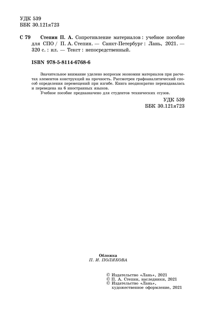 Значительное внимание уделено вопросам экономии материалов при расчетах элементов конструкций на прочность. Рассмотрен графоаналитический способ определения перемещений при изгибе. Книга неоднократно переиздавалась и переведена на 6 иностранных языков.