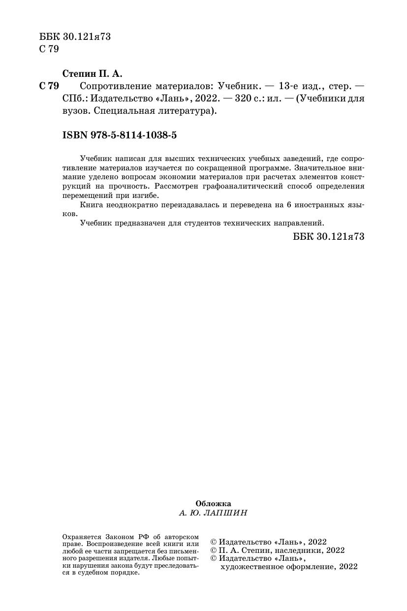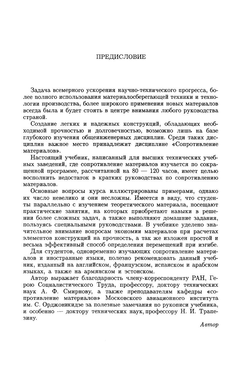 Учебник написан для высших технических учебных заведений, где сопротивление материалов изучается по сокращенной программе. Значительное внимание уделено вопросам экономии материалов при расчетах элементов конструкций на прочность. Рассмотрен графоаналитический способ определения перемещений при изгибе. Книга неоднократно переиздавалась и переведена на 6 иностранных языков. Учебник предназначен для студентов технических направлений.