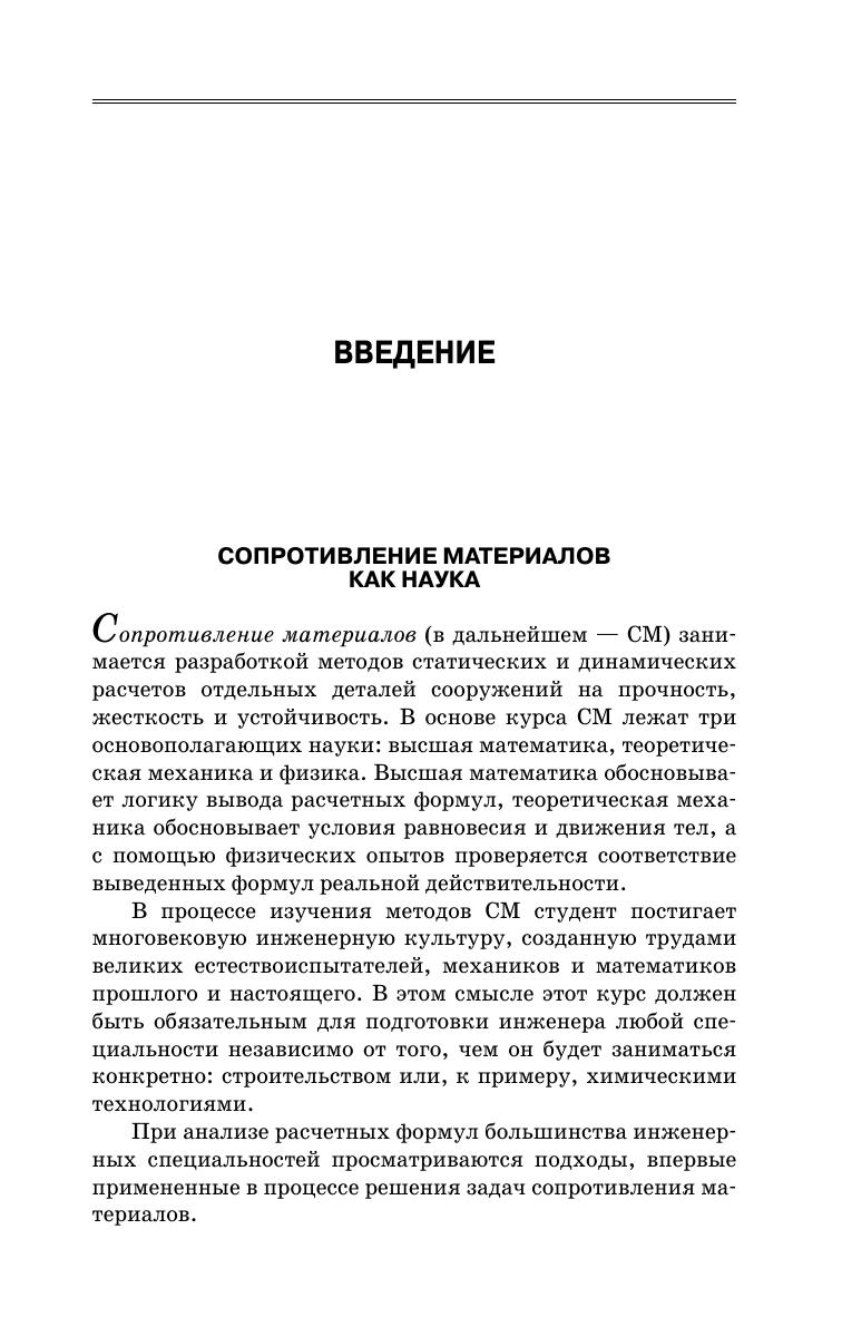 Приведены основы теории расчета стержней на прочность, жесткость и устойчивость, сопровождающиеся многочисленными примерами, приближенными к контрольным задачам для студентов заочной формы обучения. Последовательность изложения материала отличается от традиционного: сначала рассматриваются геометрические характеристики бруса, вводятся понятия продольной и главных осей инерции, которые позволяют более конкретно и наглядно излагать дальнейшие разделы курса, что для студентов очень существенно. При определении перемещений при изгибе применяется универсальное уравнение упругой линии, а для формулы Мора вводится матричная форма и Excel-программа, размещенная на одном экране ПК, позволяющая студенту видеть весь алгоритм. Предназначено для студентов технических специальностей.