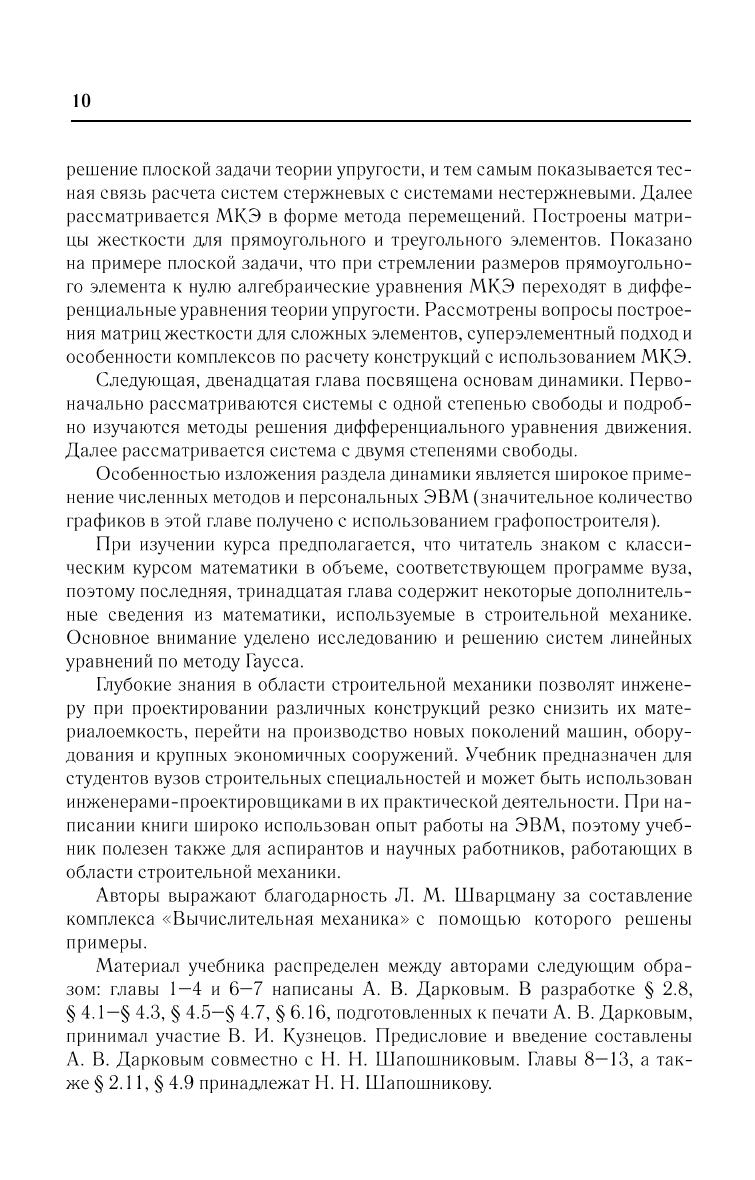 В учебнике изложены вопросы курса строительной механики (статика и динамика сооружений). Материал иллюстрируется конкретными примерами. Рассматриваются методы расчета с использованием ПК, указываются особенности этих методов. В книге отражено современное состояние строительной механики. Предназначается для строительных специальностей вузов.