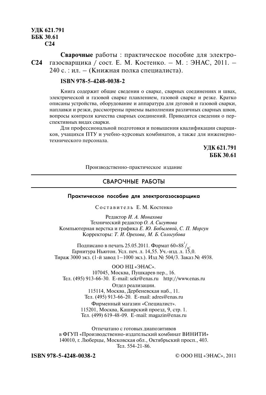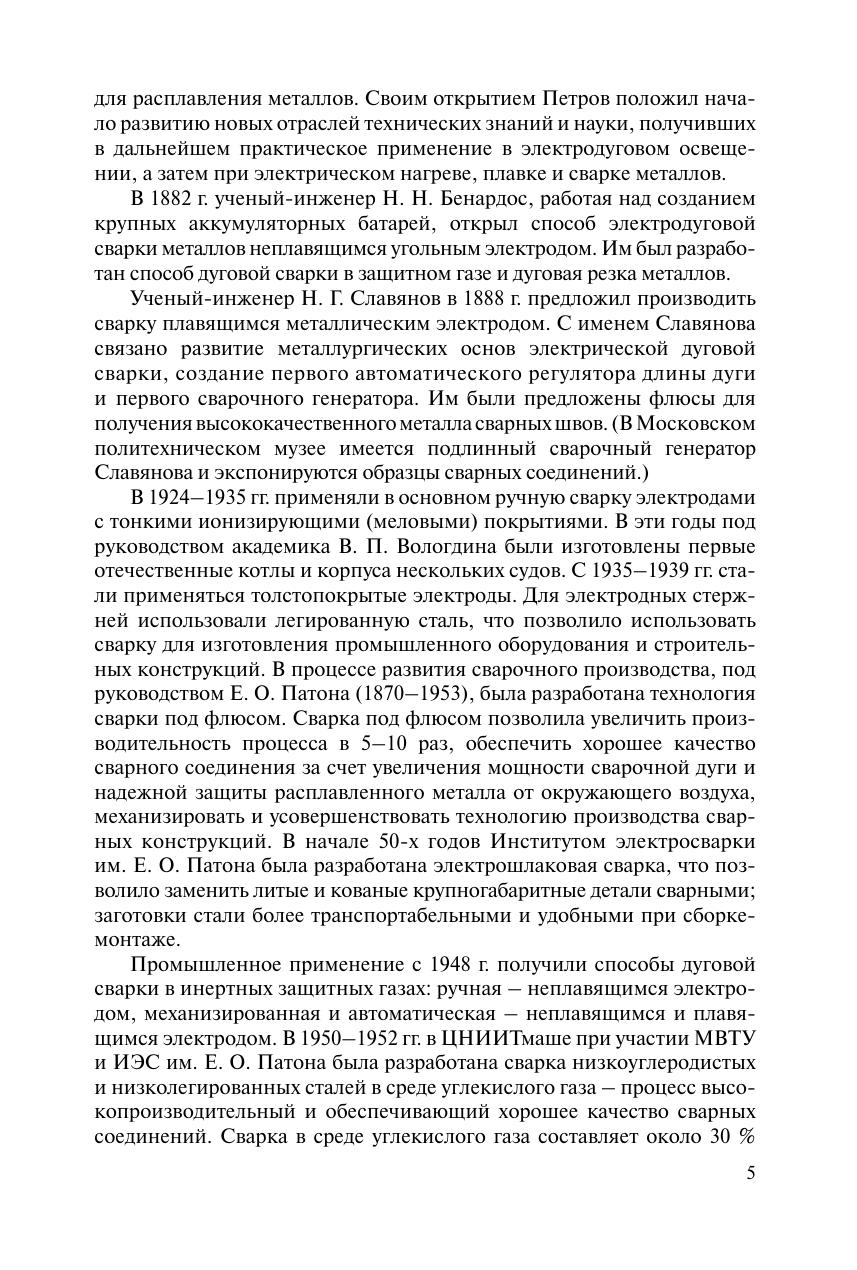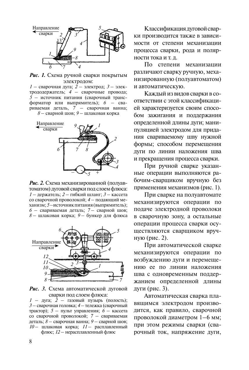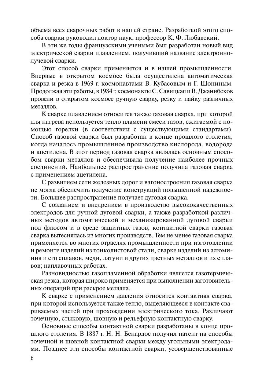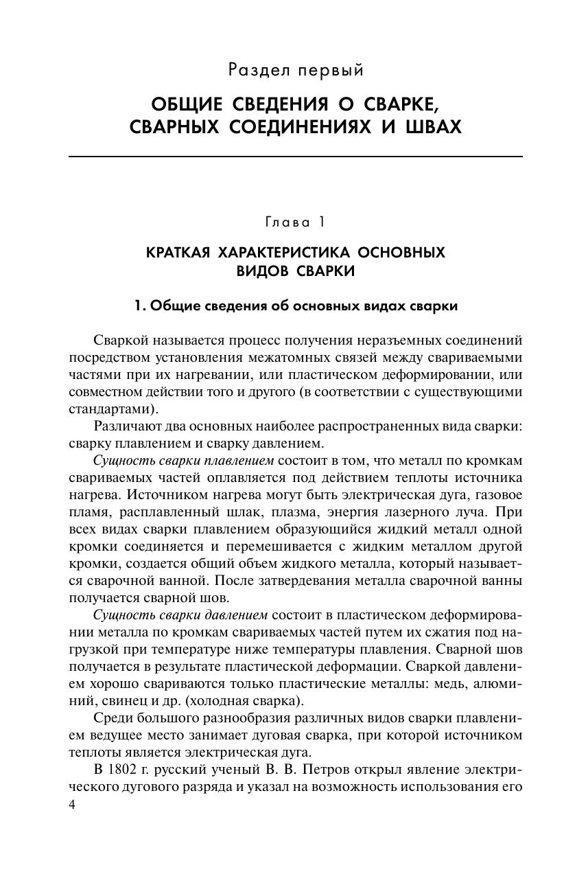 Книга содержит общие сведения о сварке, сварных соединениях и швах, электрической и газовой сварке плавлением, газовой сварке и резке.Кратко описаны устройства, оборудование и аппаратура для дуговой и газовой сварки, выплавки и резки, рассмотрены приемы выполнения различных сварных швов, вопросы контроля качества сварных соединений.Приводятся сведения о перспективных видах сварки. Для профессиональной подготовки и повышения квалификациисварщиков, учащихся ПТУ и учебно-курсовых комбинатов,а также для инженерно-технического персонала.