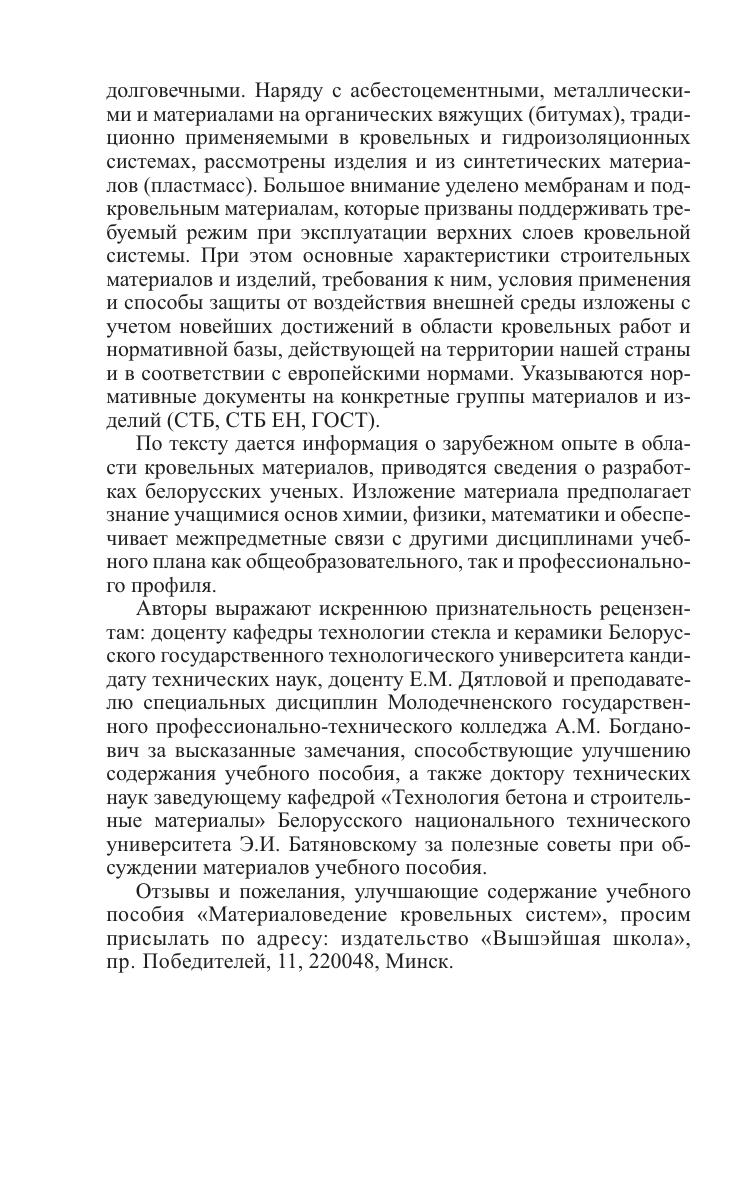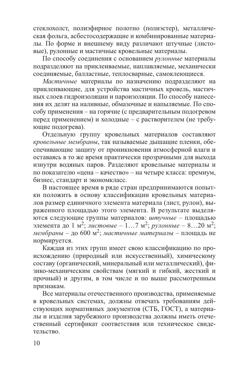 Рассмотрен весь спектр современных кровельных и гидроизоляционных материалов, представленных на рынках Республики Беларусь и зарубежных стран. В технологической последовательности приведены сырье, технология, технические и эксплуатационные характеристики и наиболее рациональные области их применения. Представленная информация по изоляционным материалам соответствует требования европейских стандартов. Для учащихся ПТО, а также для строителей-кровельщиков, заказчиков, проектировщиков, архитекторов, менеджеров строительных компаний и индивидуальных застройщиков. Будет полезно учащимся ССУЗов, студентам вузов.