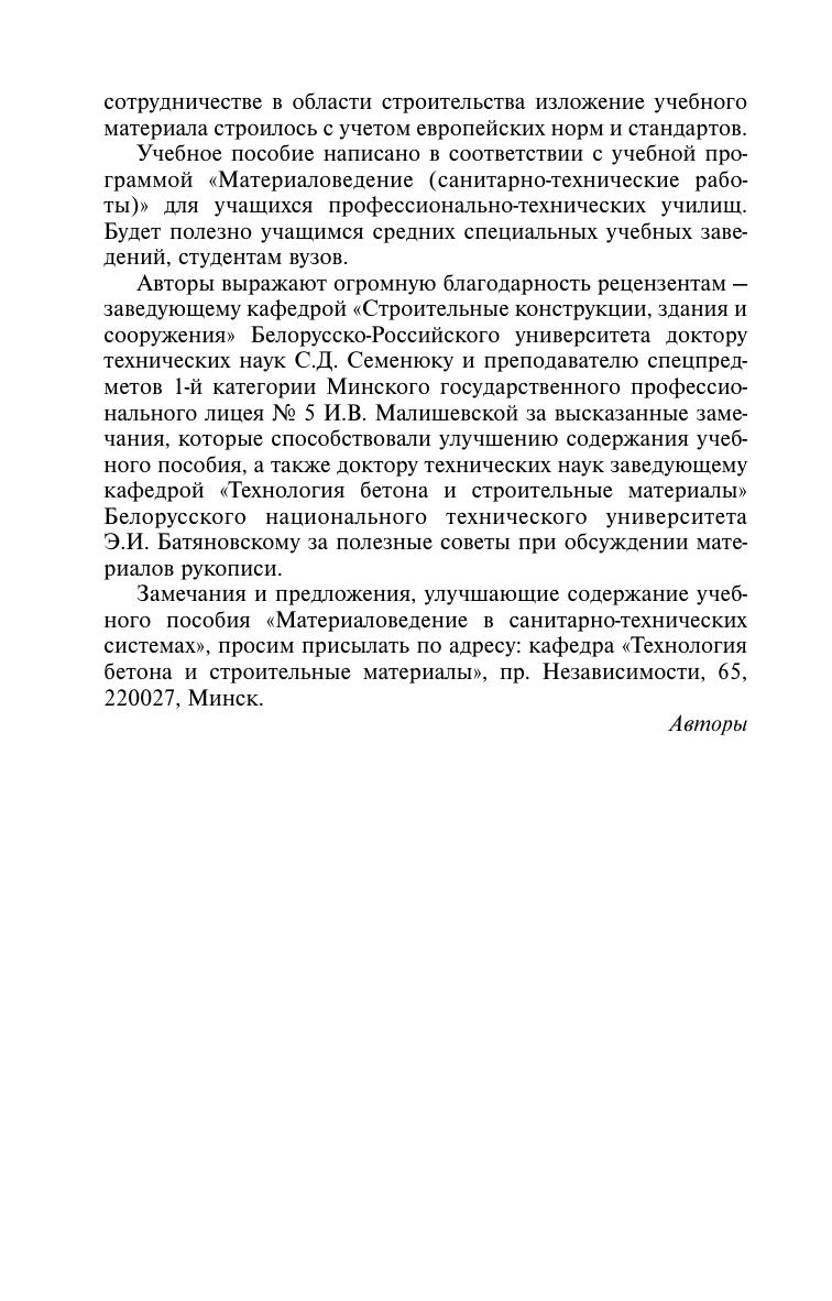 С учетом современного уровня развития науки и техники в обрасти материаловедения рассмотрены санитарно-технические материалы и сопутствующие им изделия. Особое внимание уделено материалам и изделиям из черных и цветных металлов, полимерам и пластмассам, вопросам тепло- и гидроизоляции и др. Дается информация о зарубежном опыте, экологических аспектах производства и применения сантехнических материалов и изделий. Учебный материал представлен по схеме: сырье – технология получения материала – основные свойства – области применения. Для учащихся специальности «Санитарно-технические работы» ПТУ. Может быть использовано учащимися строительных специальностей ССУЗов, студентами вузов, специалистами строительной отрасли.