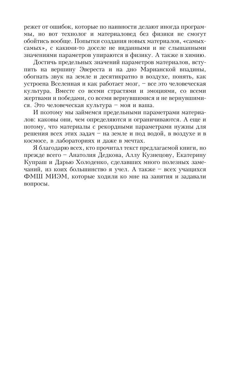 Нас окружают материалы. Еда и одежда, дома и самолеты, книги и компьютеры — все сделано из материалов. Параметры всех вещей зависят от параметров материалов, а также от конструкции и технологии. Попытки создания новых материалов, «самых-самых», с какими-то доселе не виданными и не слышанными значениями параметров упираются в физику, а также в химию.