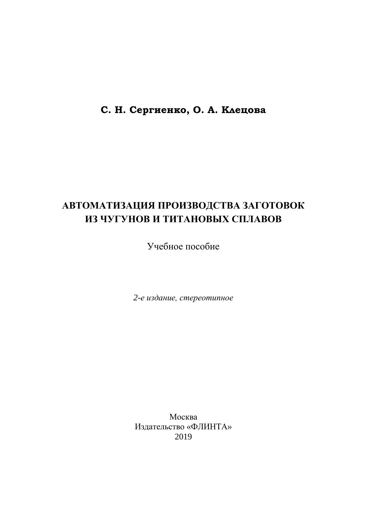 Автоматизация производства заготовок из чугунов и титановых сплавов