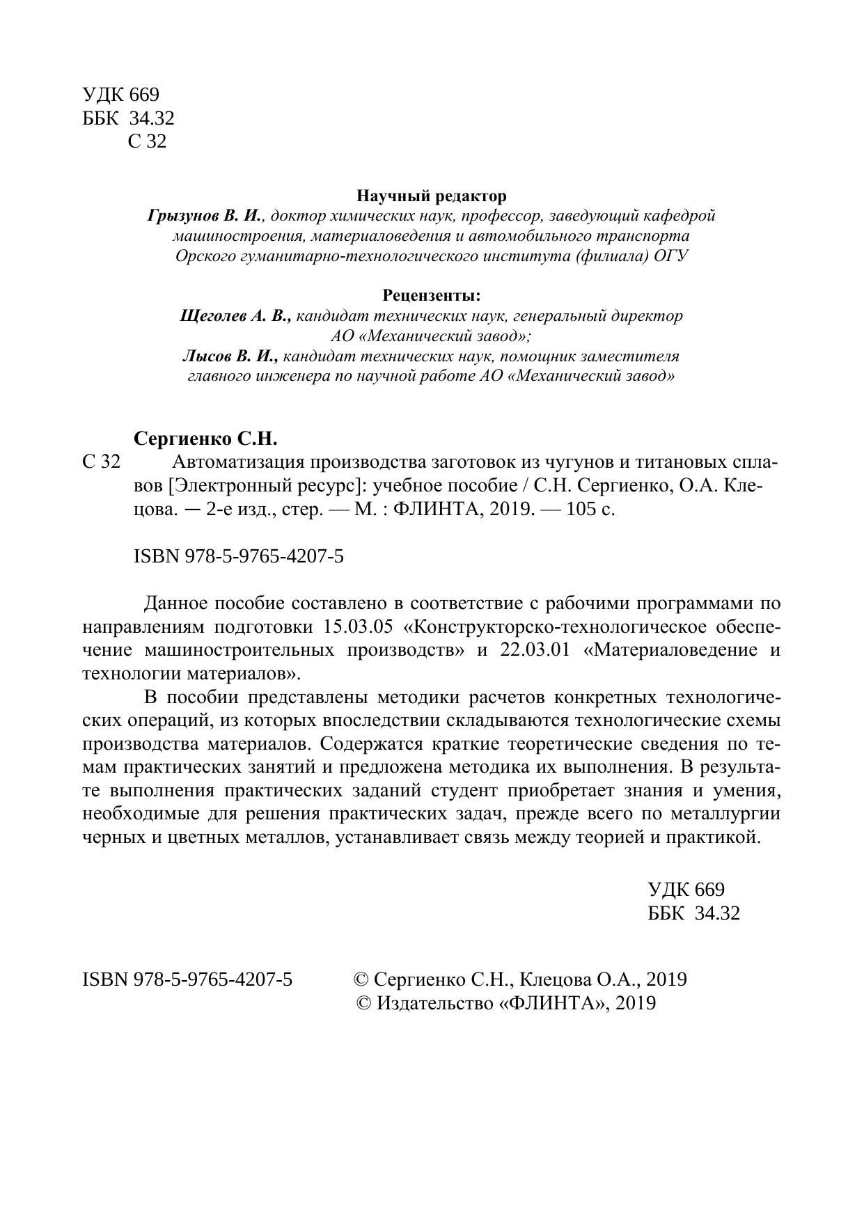Данное пособие составлено в соответствие с рабочими программами по направлениям подготовки 15.03.05 «Конструкторско-технологическое обеспечение машиностроительных производств» и 22.03.01 «Материаловедение и технологии материалов».