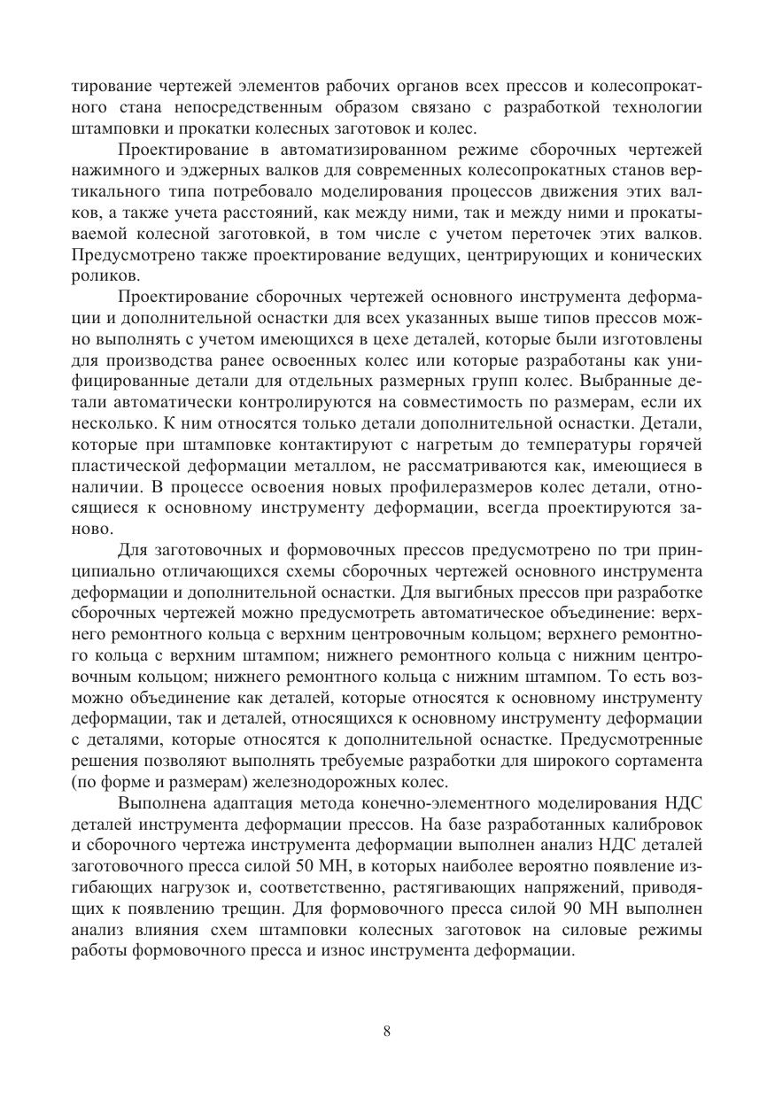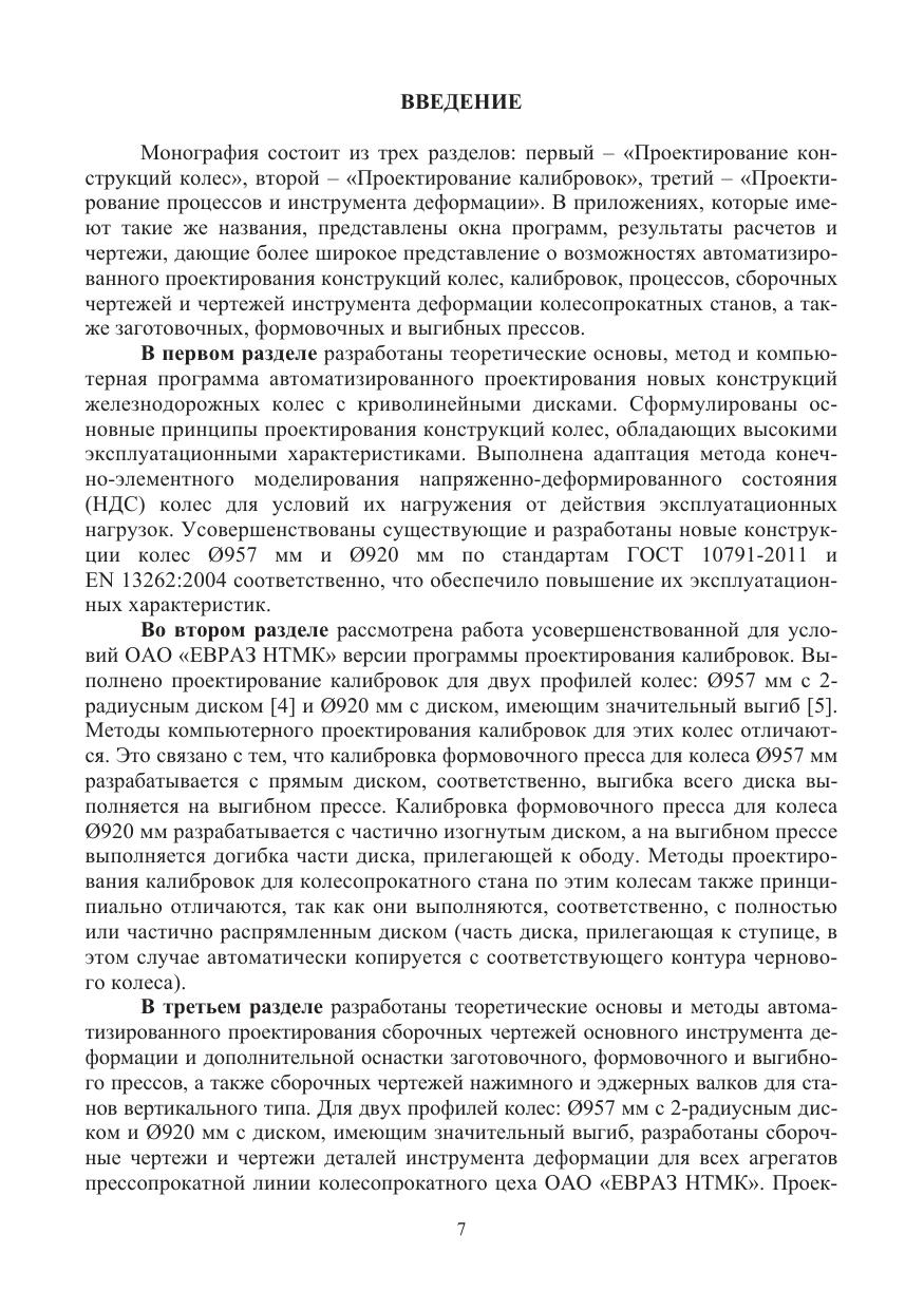 Рассмотрены вопросы совершенствования конструкций штампованно-катаных железнодорожных колес, автоматизированного проектирования профилей колес, калибровок, процессов, сборочных чертежей и чертежей инструмента деформации колесопрокатных станов, а также заготовочных, формовочных и выгибных прессов.