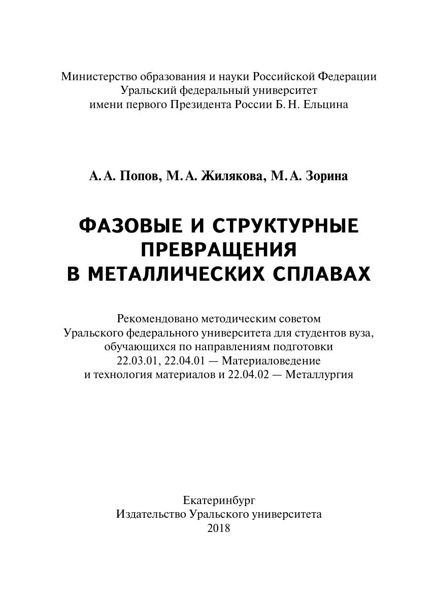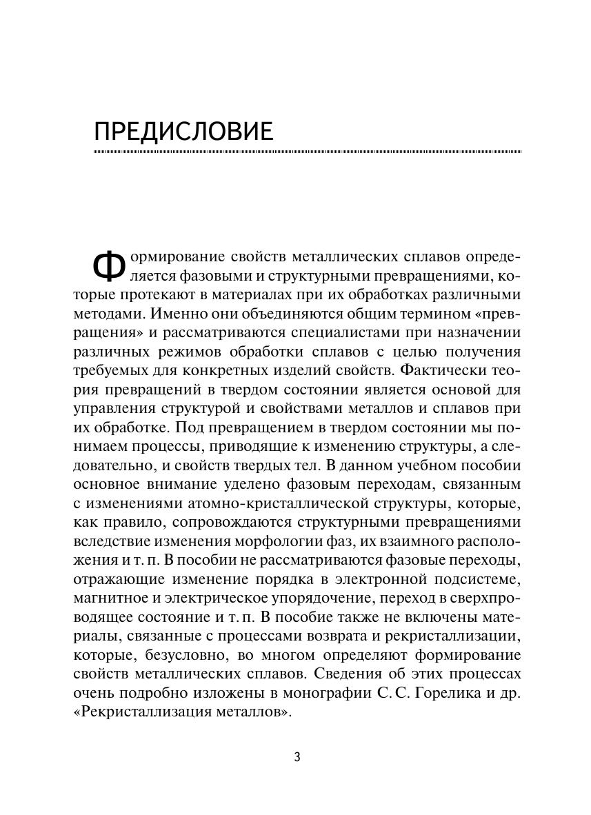 В учебном пособии последовательно изложены вопросы теории фазовых и структурных превращений, протекающих в металлах и сплавах в твердом состоянии. Проанализированы гетерогенные и гомогенные превращения в конкретных сталях и сплавах с общих позиций фазовых переходов.