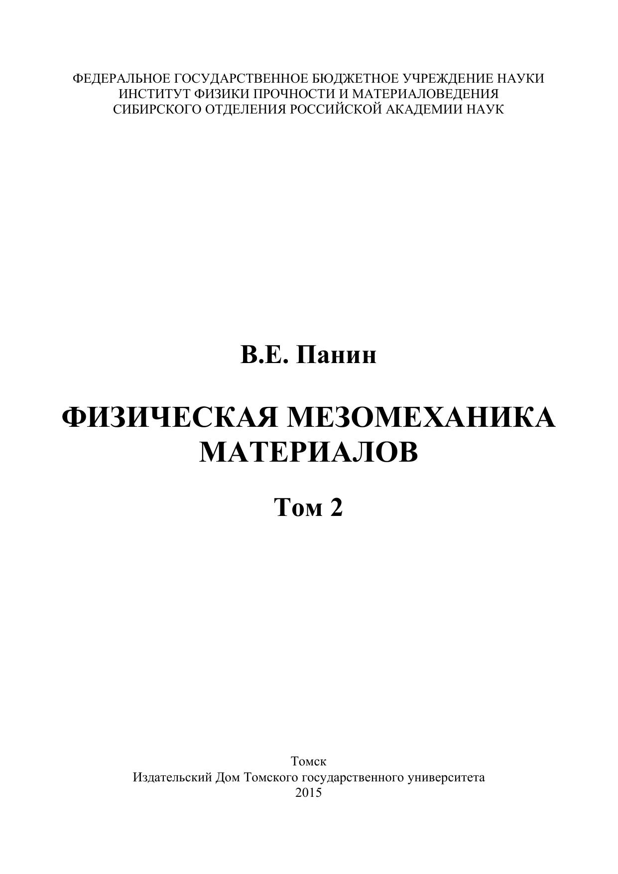 Данная книга вышла в свет к 85-летию со дня рождения выдающегося ученого в области физики и механики деформируемого твердого тела, основателя и первого директора Института физики прочности и материаловедения СО РАН академика В.Е. Панина. В ней содержатся избранные научные труды, которые отражают широкий спектр выполненных В.Е. Паниным и его учениками и коллегами фундаментальных и прикладных исследований в области изучения твердых растворов, электронных структур, представлений о сильновозбужденных состояниях в кристаллах. Их результатом стало создание нового научного направления – физическая мезомеханика материалов. Возможности нового подхода проиллюстрированы на примере его применения к исследованиям широкого круга объектов: поликристаллических материалов, сварных соединений, процессов усталостного разрушения и изнашивания и т.д. Междисциплинарный характер подходов физической мезомеханики и неравновесной термодинамики проиллюстрирован на примере анализа поведения биологических объектов. Название книги предложено профессором Г.П. Черепановым. Для специалистов в области физической мезомеханики, физики и механики твердого тела и разрушения, физического материаловедения, неразрушающего контроля, геодинамики, биомедицины.