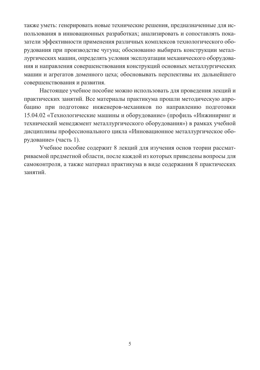 Рассмотрены перспективные направления развития и совершенствования технологических процессов доменного производства. Показано назначение, конструкция, принцип действия, достоинства и недостатки новых машин и агрегатов доменного производства.