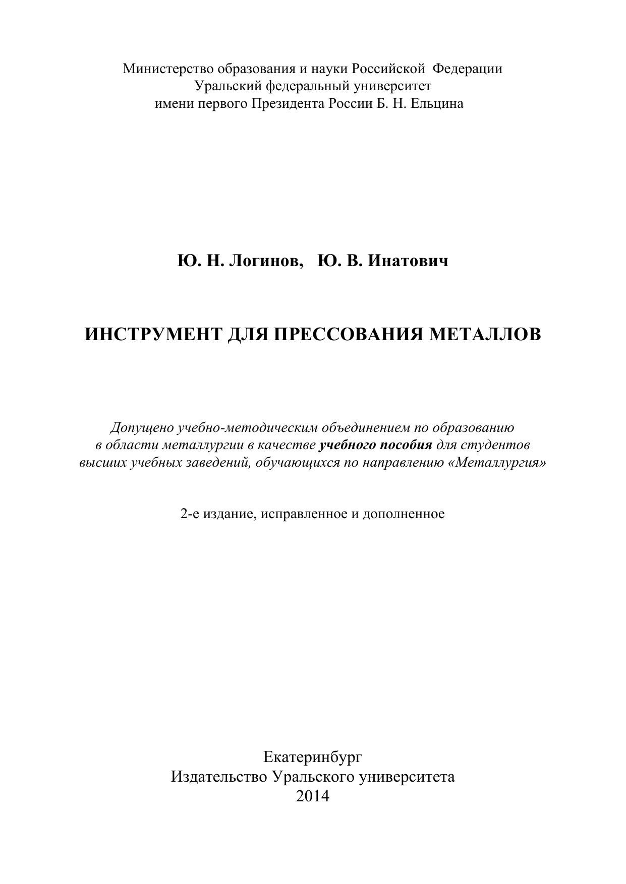 Авторы: Логинов Ю.Н., Инатович Ю.В.
