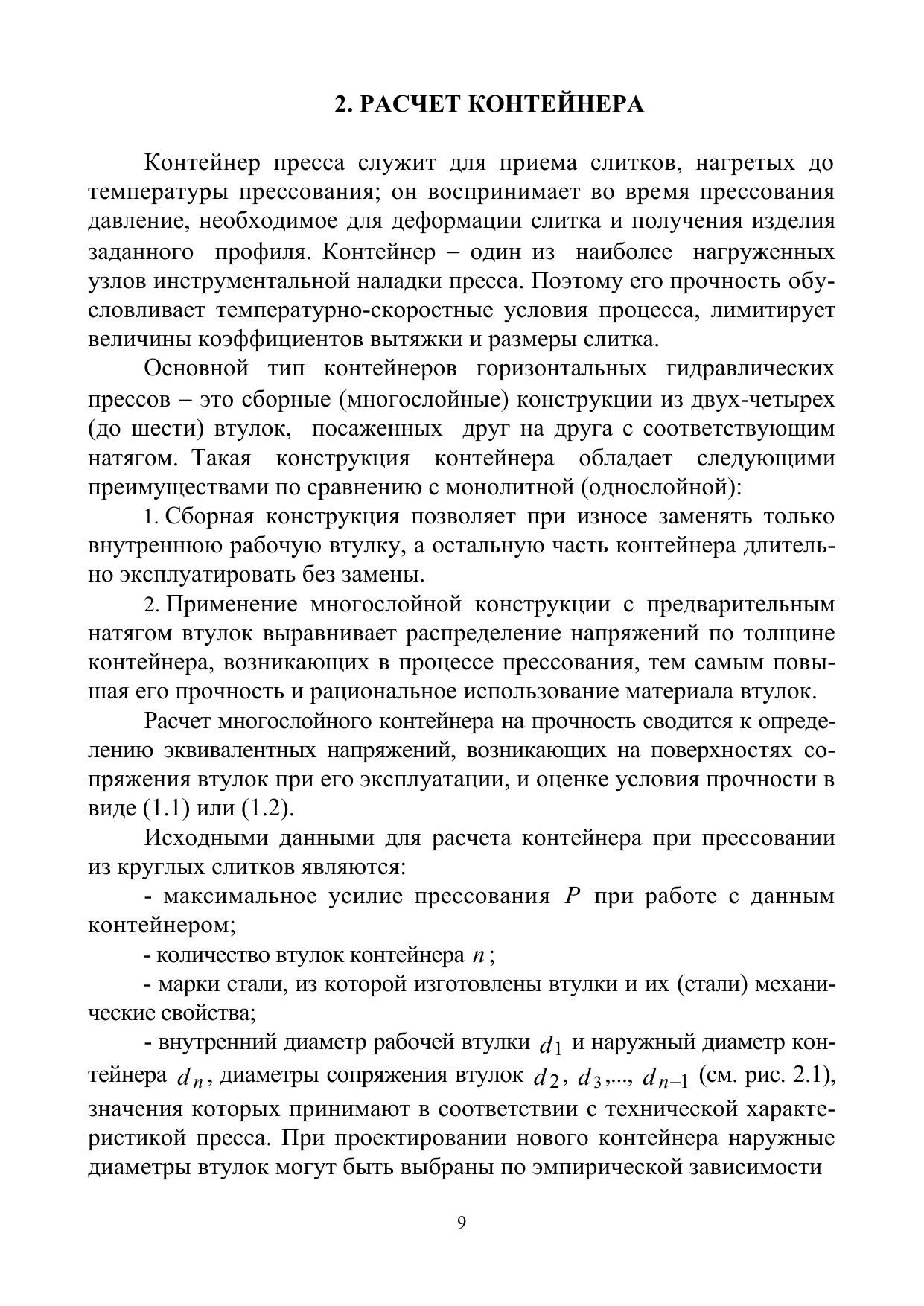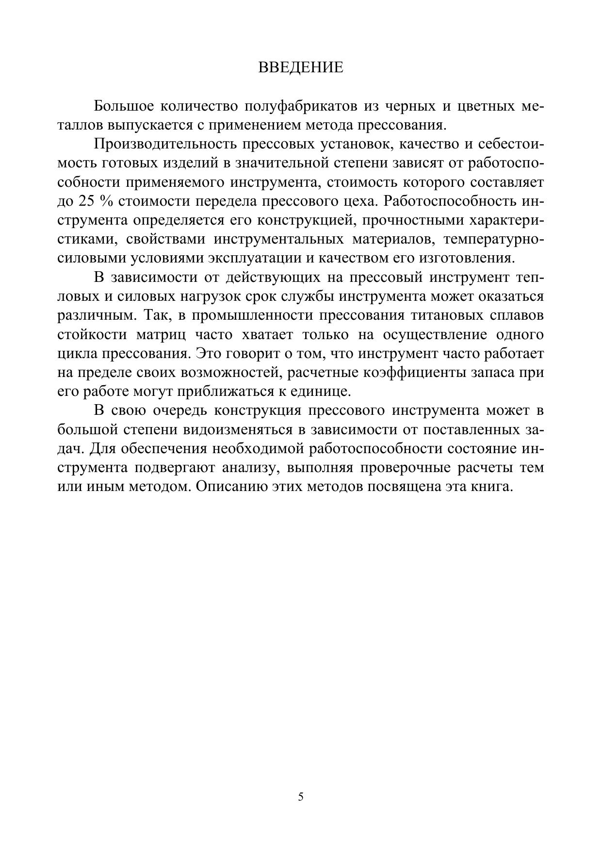 Приведено описание и методики расчета инструмента для прессования металлов и сплавов. Изложены современные методы расчета прочности основных деталей инструментальной наладки горизонтальных и вертикальных гидравлических прессов. Методики расчета каждой детали иллюстрируются примерами, в том числе с применением ЭВМ. Для ряда расчетов использован метод конечных элементов. Пособие предназначено для студентов всех форм обучения профиля «Обработка металлов давлением» и программы магистерской подготовки «Прогрессивные методы обработки металлов и сплавов давлением» по направлению 150400 – «Металлургия», слушателей ФПК и программ дополнительной подготовки специалистов.