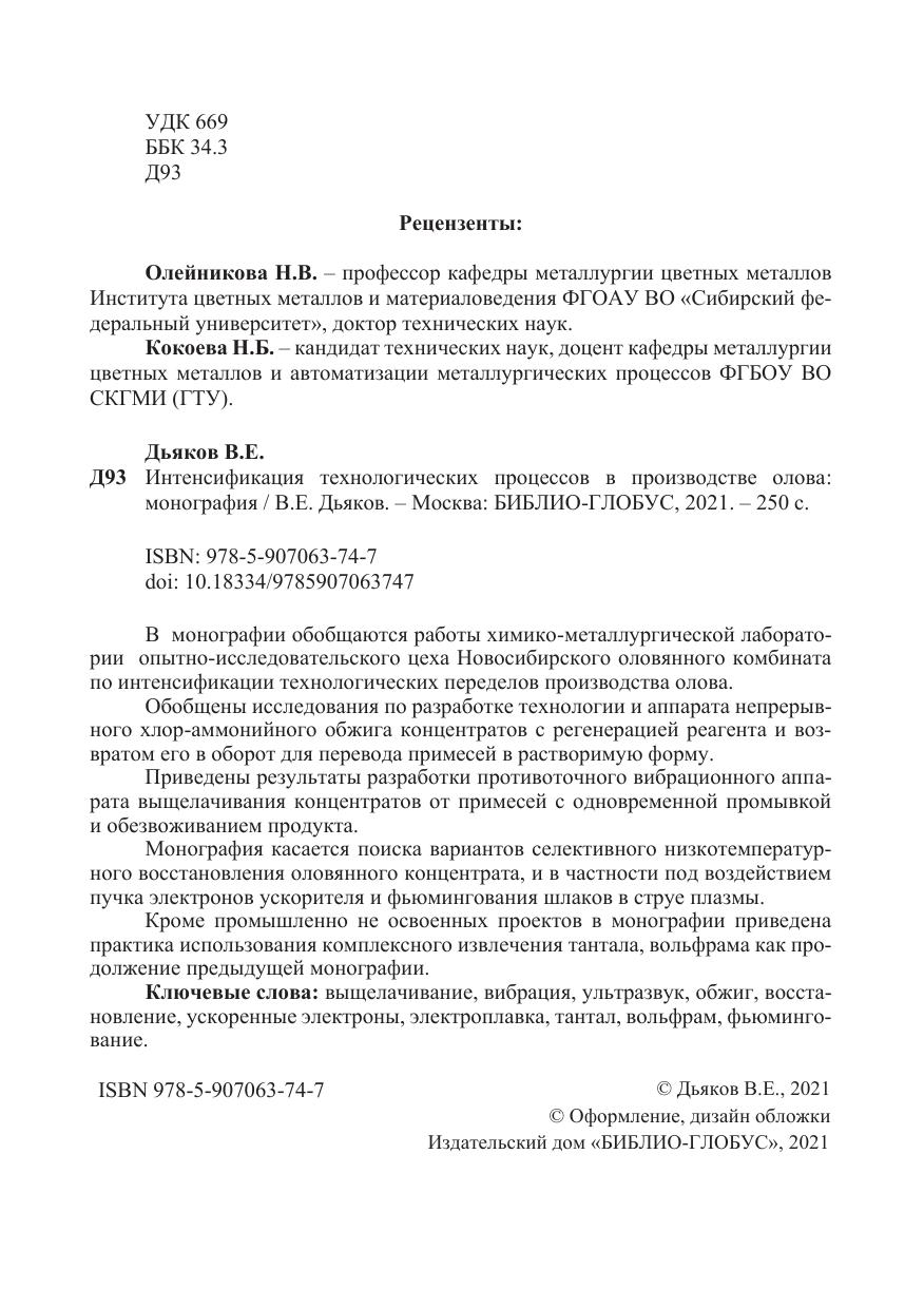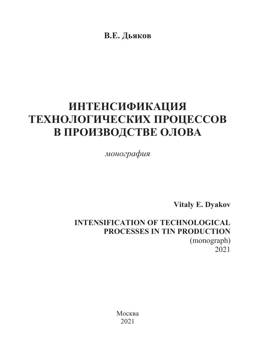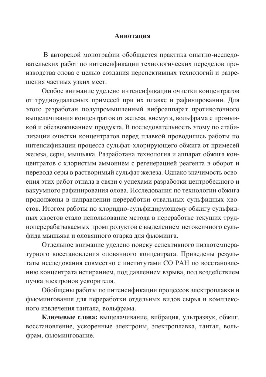 В монографии обобщаются работы химико-металлургической лаборатории опытно-исследовательского цеха Новосибирского оловянного комбината по интенсификации технологических переделов производства олова.