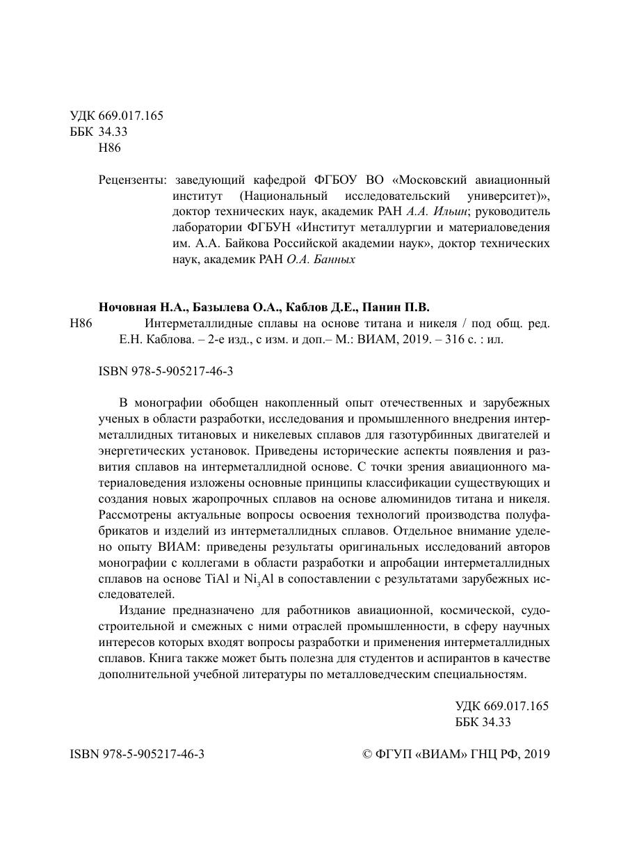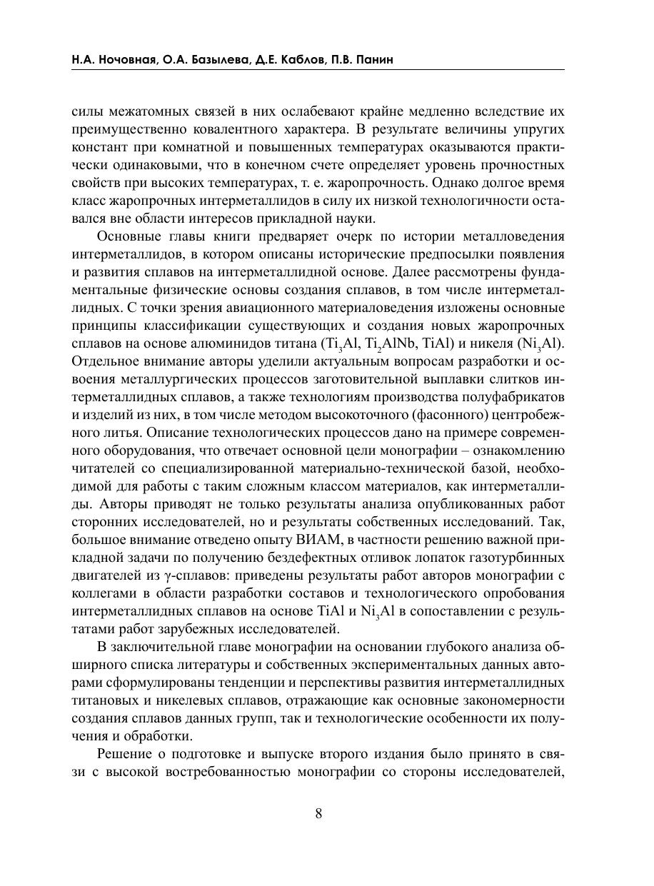 В монографии обобщен накопленный опыт отечественных и зарубежных ученых в области разработки, исследования и промышленного внедрения интерметаллидных титановых и никелевых сплавов для газотурбинных двигателей и энергетических установок.
