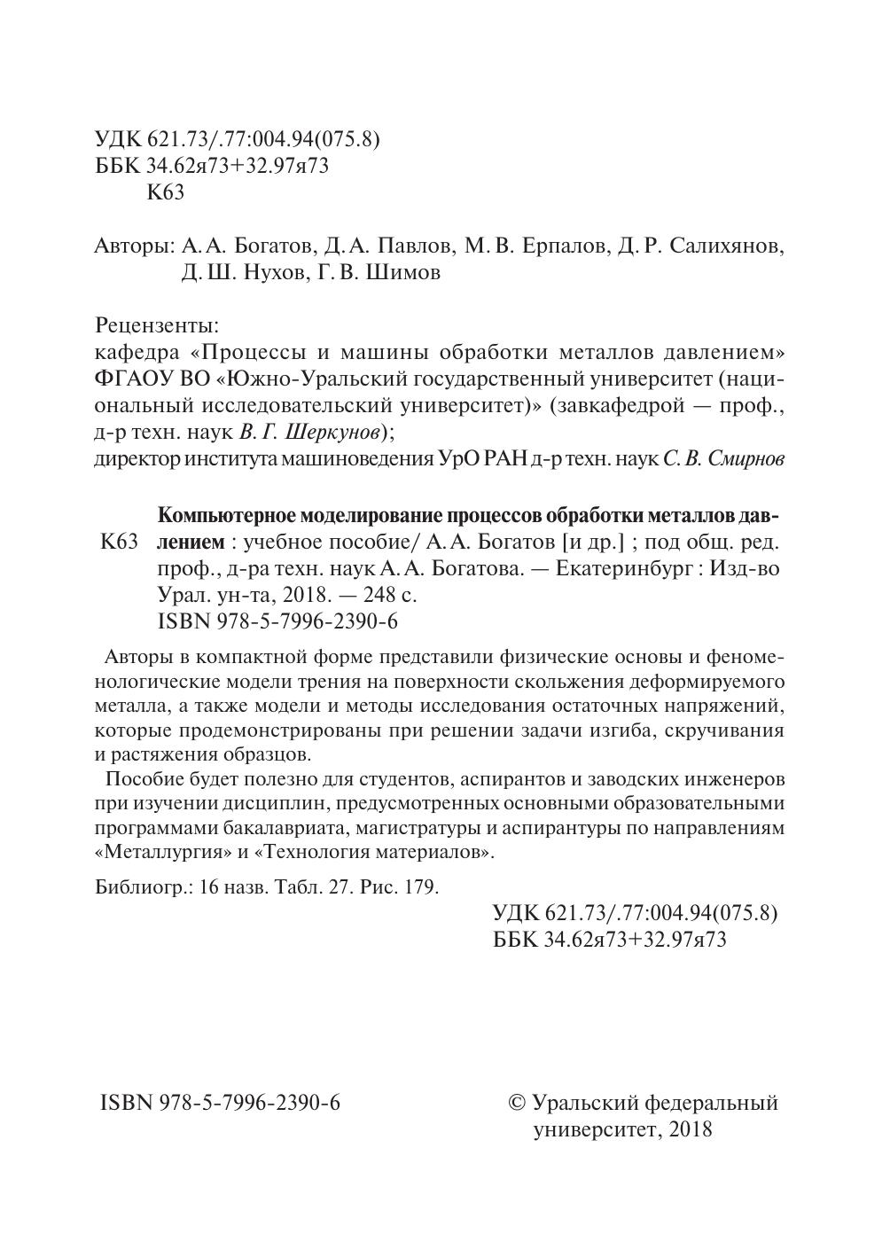 Авторы в компактной форме представили физические основы и феноменологические модели трения на поверхности скольжения деформируемого металла, а также модели и методы исследования остаточных напряжений, которые продемонстрированы при решении задачи изгиба, скручивания и растяжения образцов. Пособие будет полезно для студентов, аспирантов и заводских инженеров при изучении дисциплин, предусмотренных основными образовательными