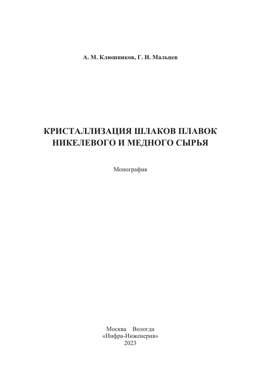 Кристаллизация шлаков плавок никелевого и медного сырья