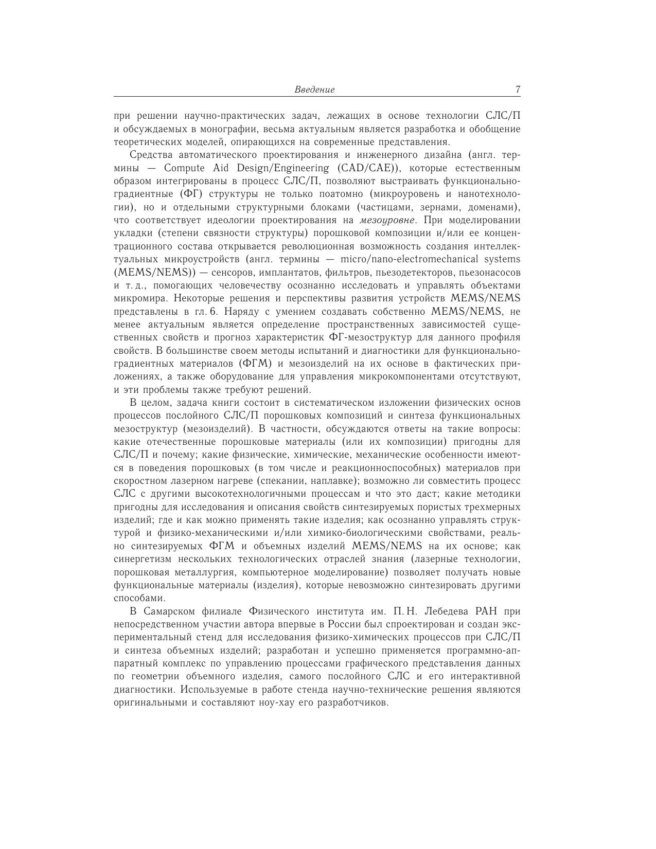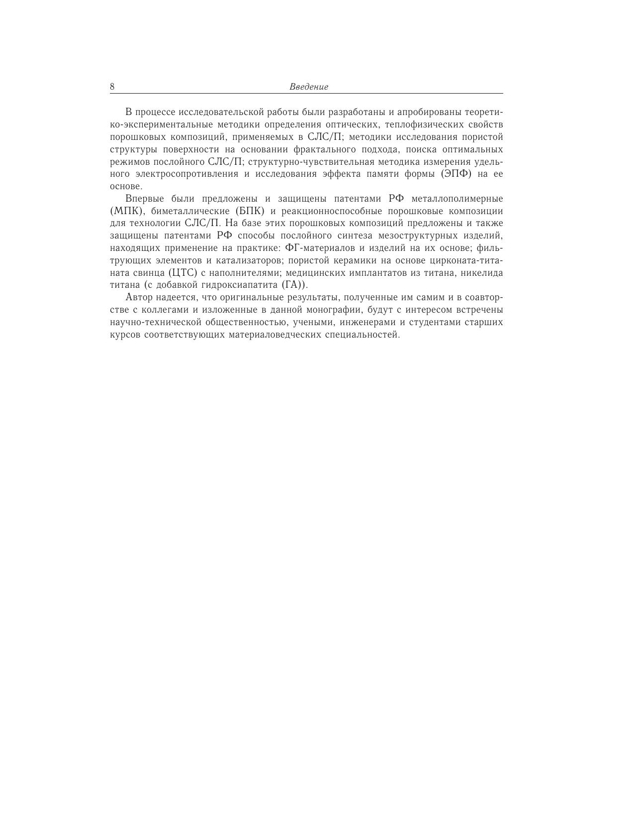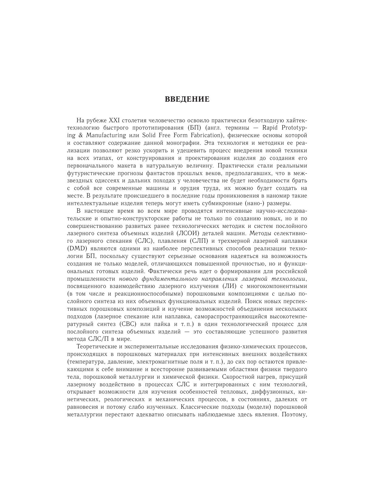В книге представлено систематическое изложение физических основ процессов послойного селективного лазерного спекания и плавления (СЛС/П) порошковых композиций и синтеза функциональных и градиентных мезоструктур (мезоизделий). Рассмотрены перспективы формирования для российской промышленности нового фундаментального направления лазерной технологии, использующего взаимодействие лазерного излучения с многокомпонентными (в том числе и реакционноспособными) порошковыми композициями с целью послойного синтеза из них объемных функциональных изделий. Поиск новых перспективных порошковых композиций и изучение возможностей объединения нескольких подходов (лазерное спекание или наплавка, самораспространяющийся высокотемпературный синтез или пайка) в один технологический процесс для послойного синтеза объемных изделий - эти составляющие успешного развития метода СЛС/П также изложены в книге. Ученым и специалистам в области порошковой металлургии и материаловедения, студентам металлургических и материаловедческих специальностей.
