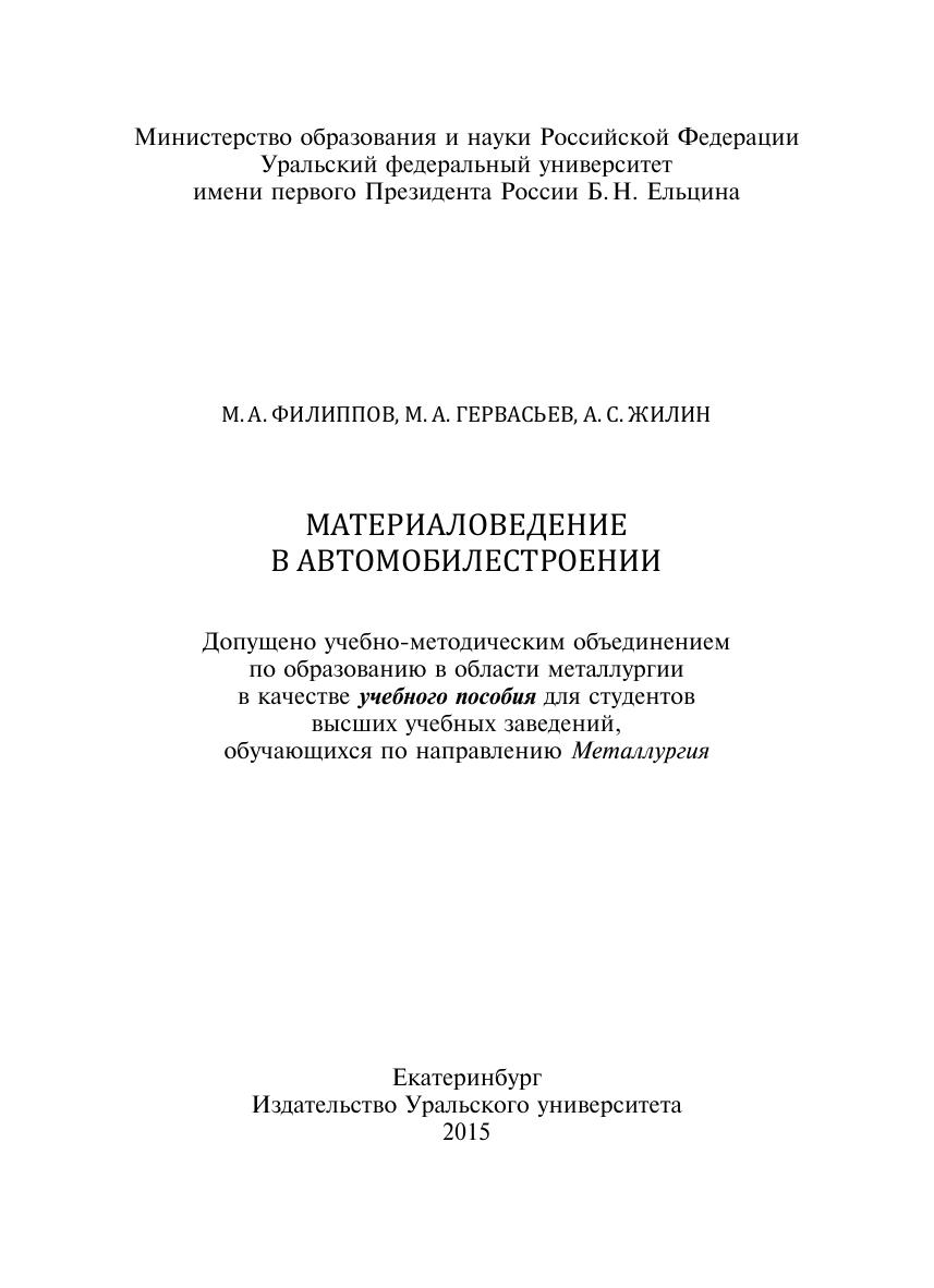 Предназначено для подготовки специалистов по материаловедению и металлургии. Изложены металловедческие основы выбора конструкционных сталей, чугунов и сплавов цветных металлов, технологии термической обработки и сформулированы принципы, которыми следует руководствоваться при выборе металлических сплавов для конкретных изделий и узлов автомобилей, технологий их упрочняющей, термической и химико-термической обработки. Описаны конструкции и условия работы деталей, узлов и систем автомобиля. Учебное пособие предназначено для студентов машиностроительных и металлургических специальностей, может быть полезно для инженерно-технических работников предприятий, научно-исследовательских институтов.