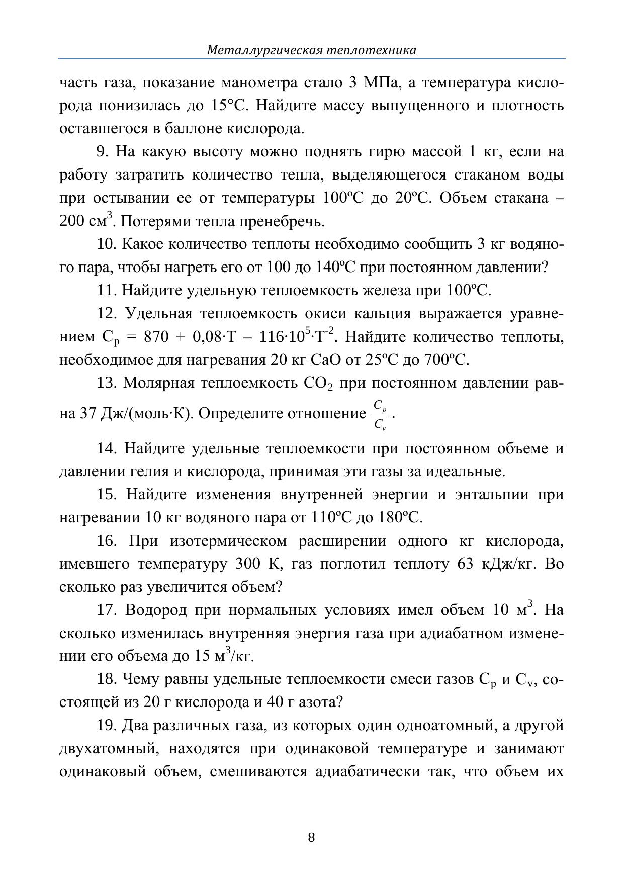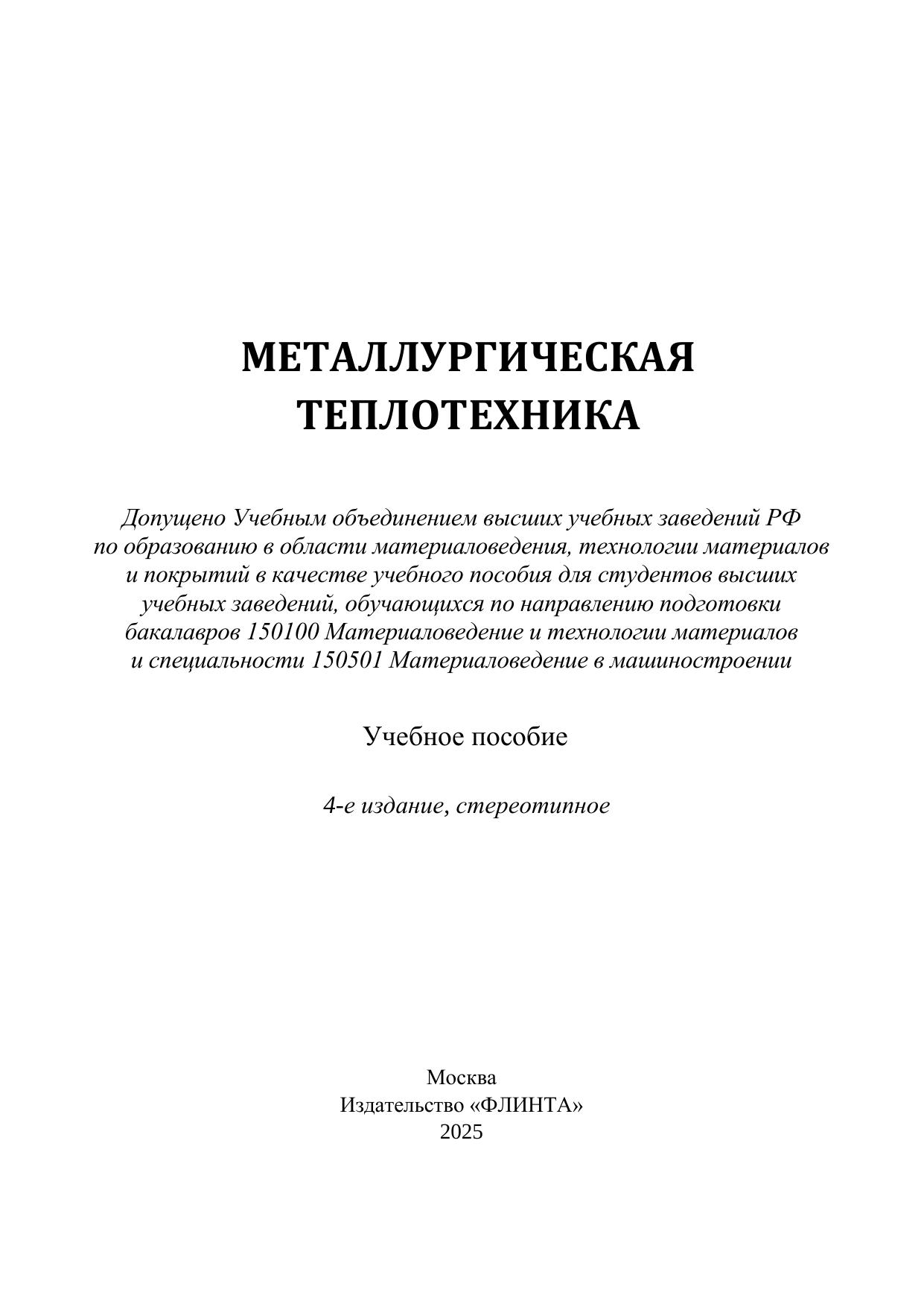 Настоящее учебное пособие содержит краткие теоретические сведения и задачи по дисциплине «Металлургическая теплотехника» и соответствует программе ее изучения для специальности 150501. Оно может быть полезно для студентов других специальностей, связанных с теплотехническими установками.