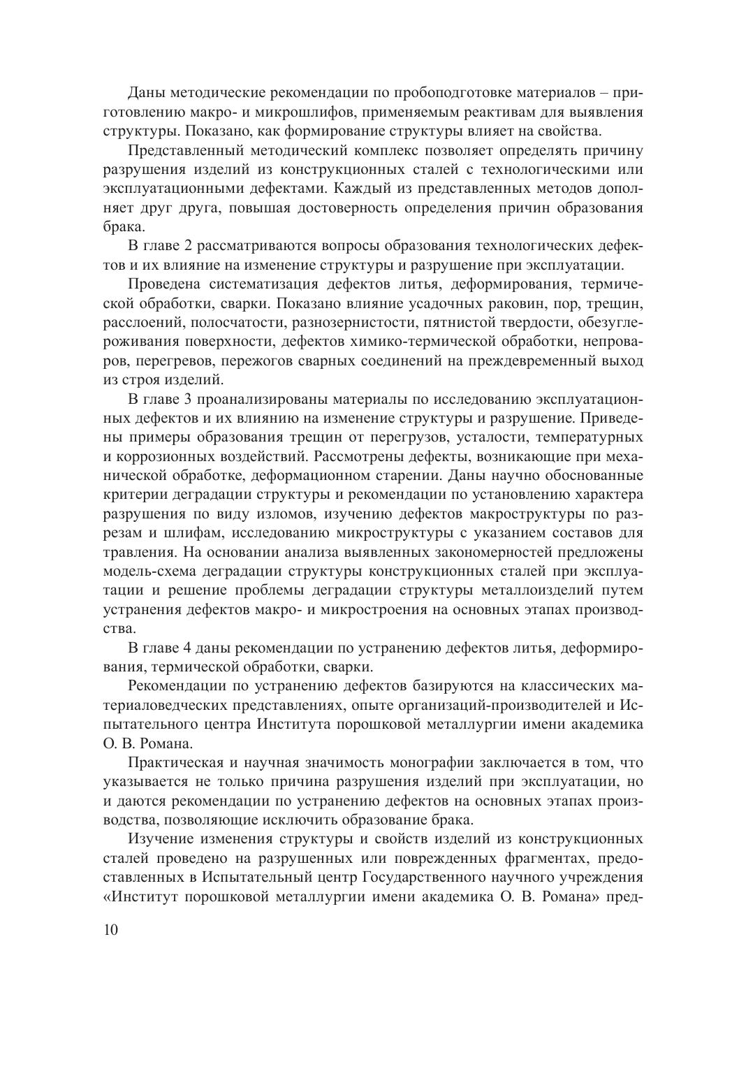 В монографии рассматриваются вопросы влияния технологических и эксплуатационных дефектов на изменение структуры и разрушение изделий из конструкционных сталей. Проведен анализ причин потери несущей способности под действием пониженных и повышенных температур, длительных воздействий агрессивных сред и давлений, эрозионно-механического изнашивания на изменение служебных характеристик изделий машиностроения, нефтехимии и специального назначения. Представлены модель-схема и критерии деградации структуры конструкционных сталей при эксплуатации.