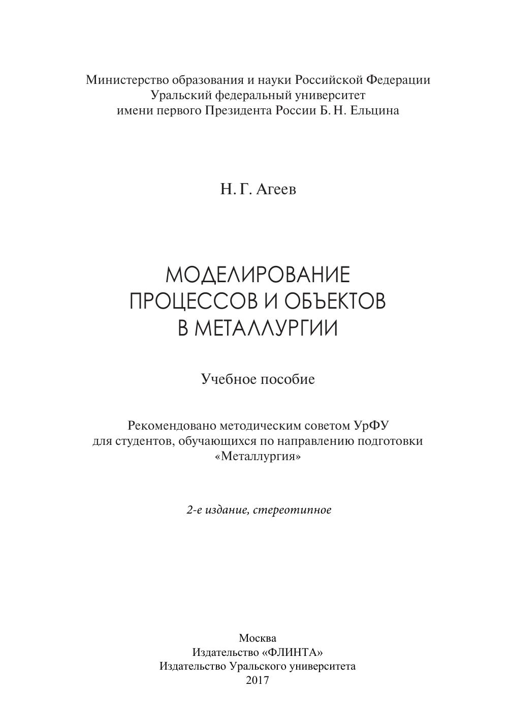 Моделирование процессов и объектов в металлургии: Учебное пособие