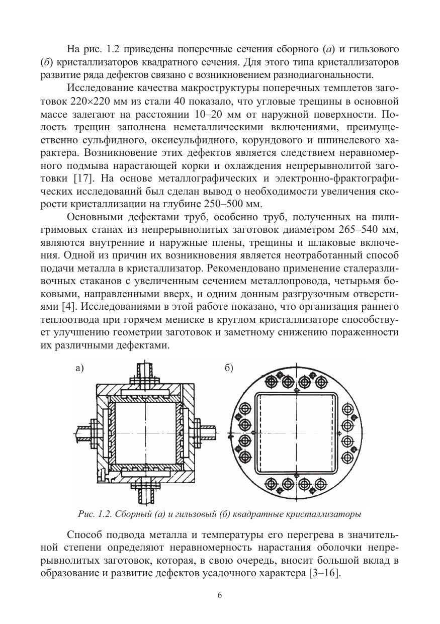 Обобщены и систематизированы материалы о конструкциях кристаллизаторов и зон вторичного охлаждения машин непрерывного литья заготовок (МНЛЗ) и происходящих в них тепломассообменных процессах. Приведены результаты физического и математического моделирования гидродинамических процессов с учётом конструктивных параметров применения сталеразливочных стаканов, водоохлаждаемых виброхолодильников в кристаллизаторах и технологических режимов ввода упругих колебаний в непрерывнолитые заготовки в зонах вторичного охлаждения. Рассмотрены различные принципы интенсификации формирования непрерывнолитых заготовок в условиях направленного или градиентного воздействия на них, позволяющие оптимизировать условия всплывания неметаллических включений, формирования макро- и микроструктуры литого металла.