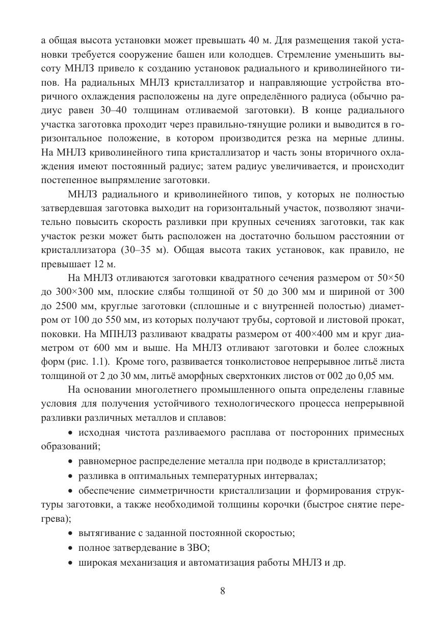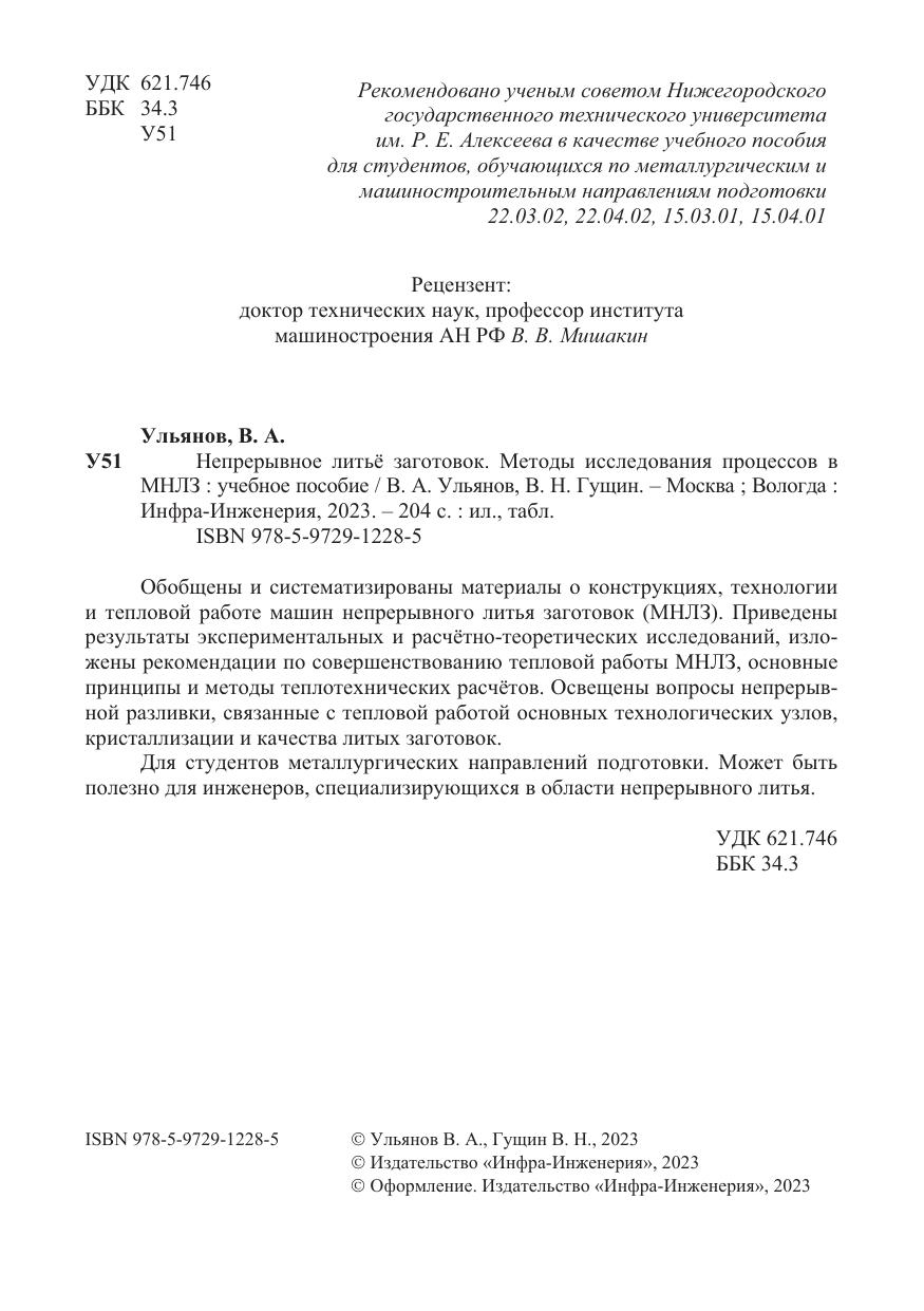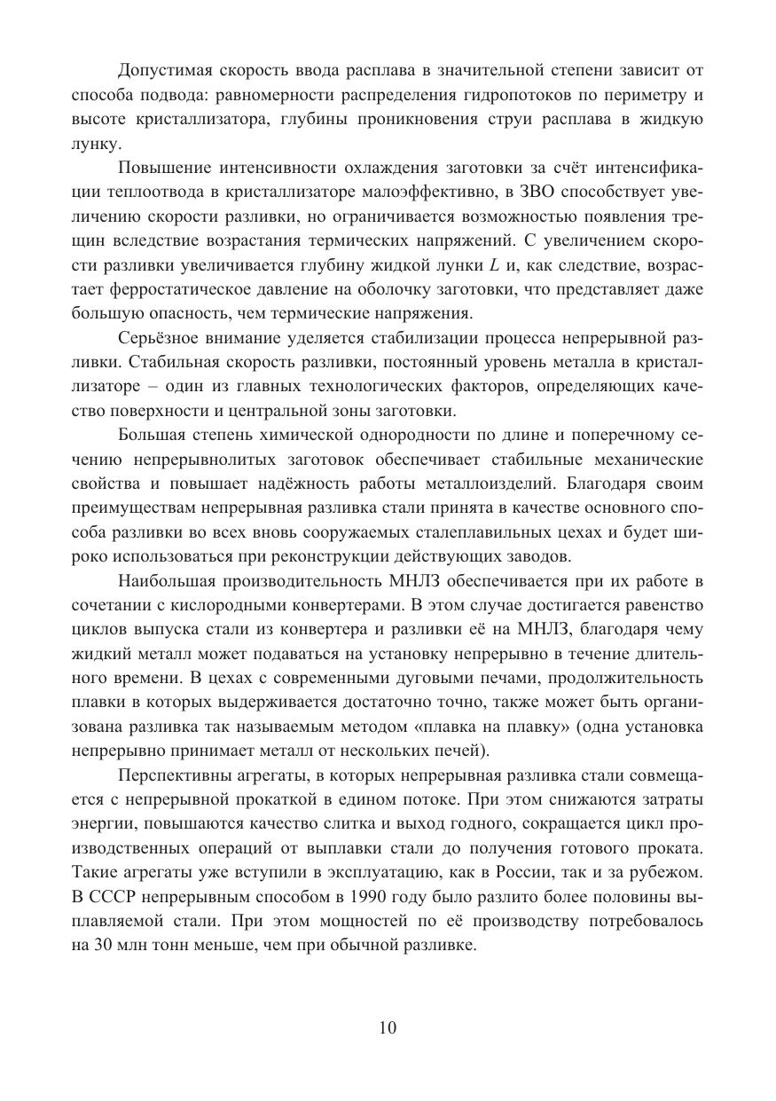Обобщены и систематизированы материалы о конструкциях, технологии и тепловой работе машин непрерывного литья заготовок (МНЛЗ). Приведены результаты экспериментальных и расчётно-теоретических исследований, изложены рекомендации по совершенствованию тепловой работы МНЛЗ, основные принципы и методы теплотехнических расчётов. Освещены вопросы непрерывной разливки, связанные с тепловой работой основных технологических узлов, кристаллизации и качества литых заготовок.