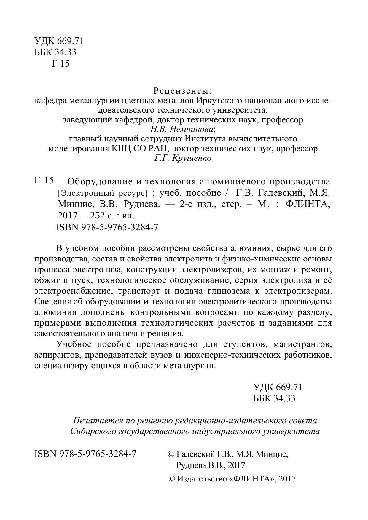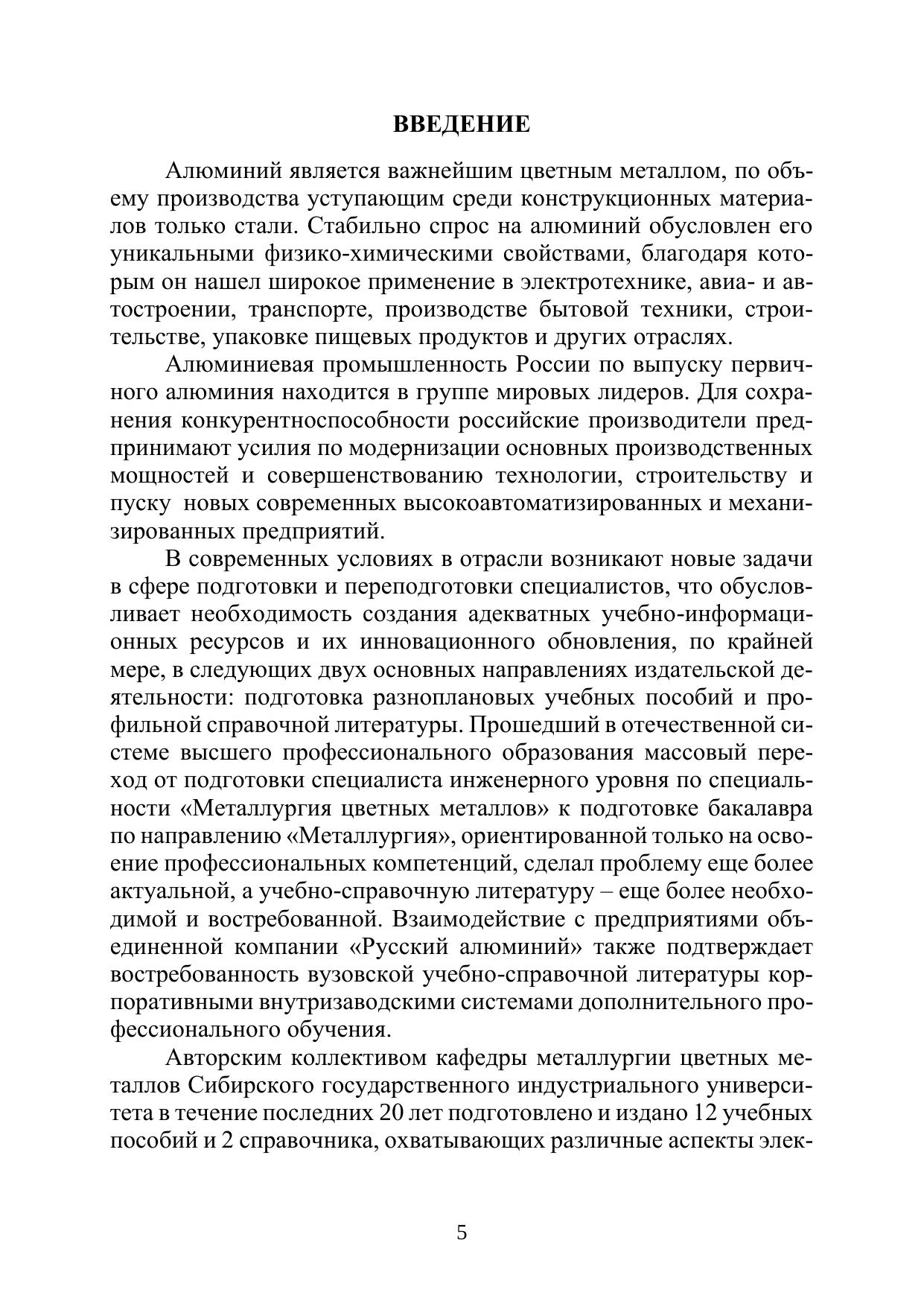 В учебном пособии рассмотрены свойства алюминия, сырье для его производства, состав и свойства электролита и физико-химические основы процесса электролиза, конструкции электролизеров, их монтаж и ремонт, обжиг и пуск, технологическое обслуживание, серия электролиза и её электроснабжение, транспорт и подача глинозема к электролизерам. Сведения об оборудовании и технологии электролитического производства алюминия дополнены контрольными вопросами по каждому разделу, примерами выполнения технологических расчетов и заданиями для самостоятельного анализа и решения. Учебное пособие предназначено для студентов, магистрантов, аспирантов, преподавателей вузов и инженерно-технических работников, специализирующихся в области металлургии.