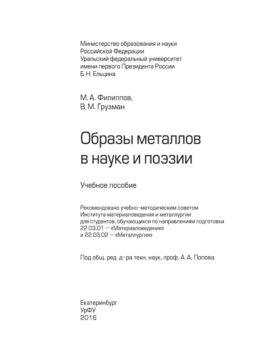 Образы металлов в науке и поэзии: учебное пособие