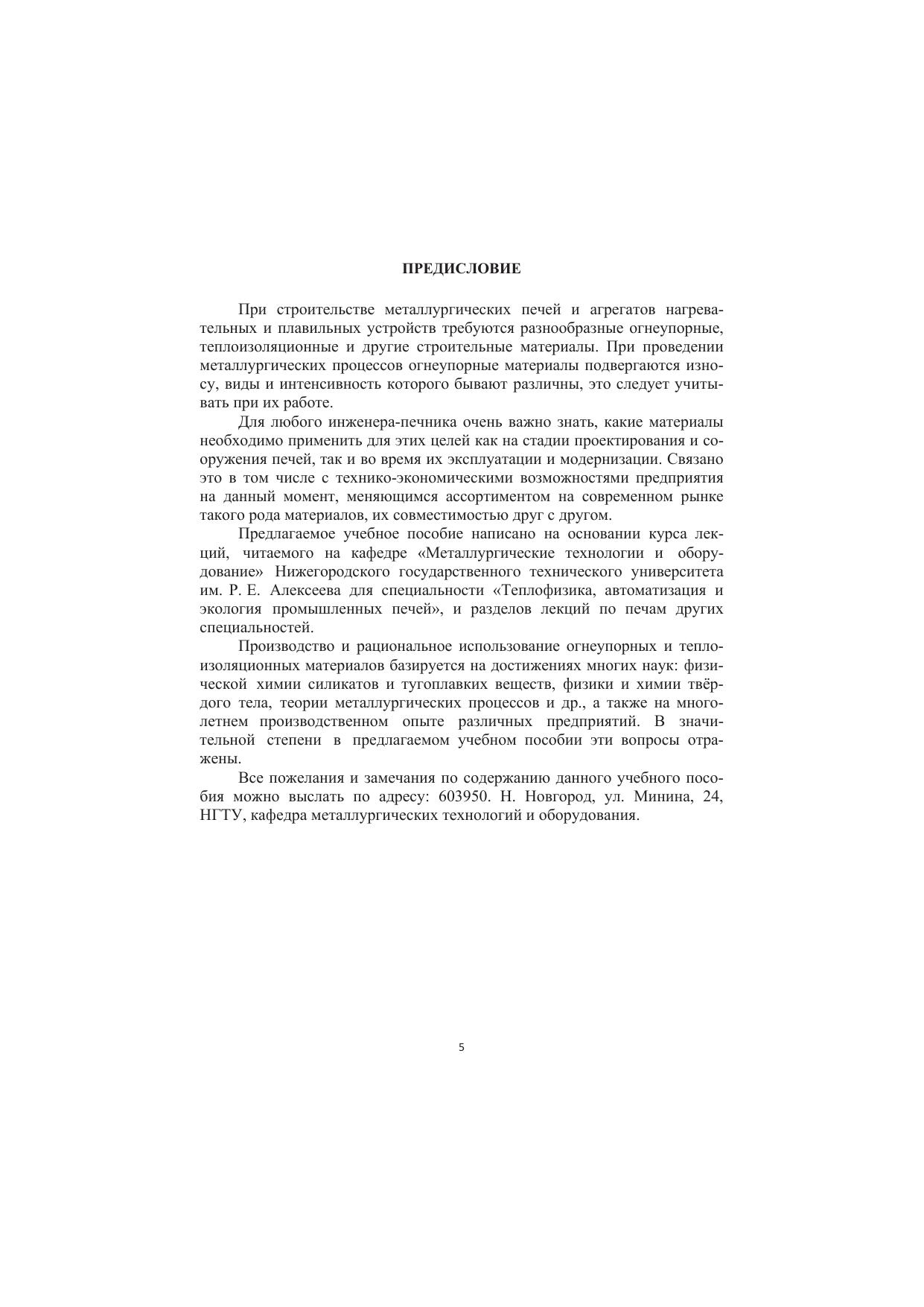 Рассмотрены основные понятия и закономерности формирования структуры огнеупорных и теплоизоляционных материалов. Описаны свойства этих материалов. Изложены основы технологии получения наиболее применяемых в промышленности материалов, даны критерии выбора рациональных огнеупорных и теплоизоляционных материалов. Указаны способы повышения стойкости футеровок печей и эффективности использования применяемых для них материалов.