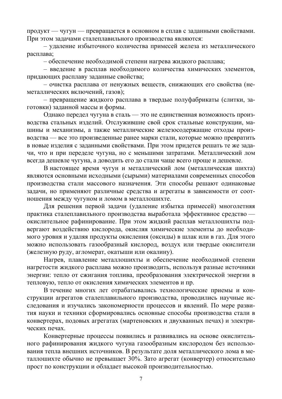 В учебном пособии рассмотрены основы теории процессов производства стали, термодинамика и кинетика основных реакций окислительного рафинирования, протекающих в сталеплавильной ванне. Описаны огнеупо-ры, применяющиеся в сталеплавильном производстве. Даны основы технологий выплавки стали в кислородных конвертерах, в двухванном сталеплавильном агрегате и электродуговых печах. Представлено описание процессов, происходящих при внепечной обработке стали и разливке ее на машинах непрерывного литья заготовок. Рассмотрены особенности кристаллизации стали и основные дефекты, возникающие при разливке.