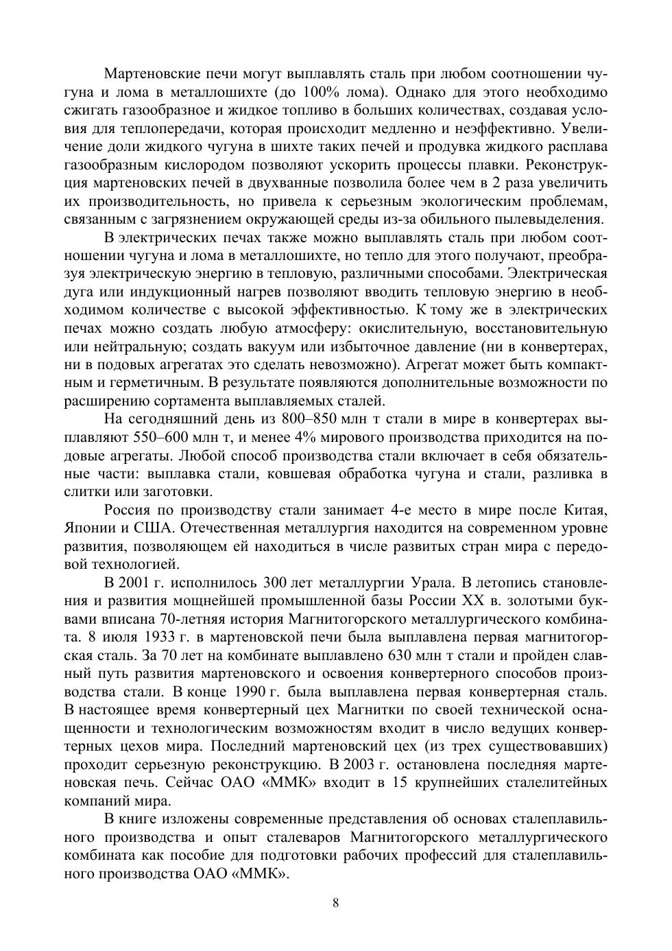 В учебном пособии рассмотрены основы теории процессов производства стали, термодинамика и кинетика основных реакций окислительного рафинирования, протекающих в сталеплавильной ванне. Описаны огнеупоры, применяющиеся в сталеплавильном производстве. Даны основы технологий выплавки стали в кислородных конвертерах, в двухванном сталеплавильном агрегате и электродуговых печах. Представлено описание процессов, происходящих при внепечной обработке стали и разливке ее на машинах непрерывного литья заготовок. Рассмотрены особенности кристаллизации стали и основные дефекты, возникающие при разливке. Учебное пособие предназначено для студентов колледжей, лицеев и техникумов. Соответствует современным требованиям Федерального государственного образовательного стандарта среднего профессионального образования и профессиональным квалификационным требованиям.