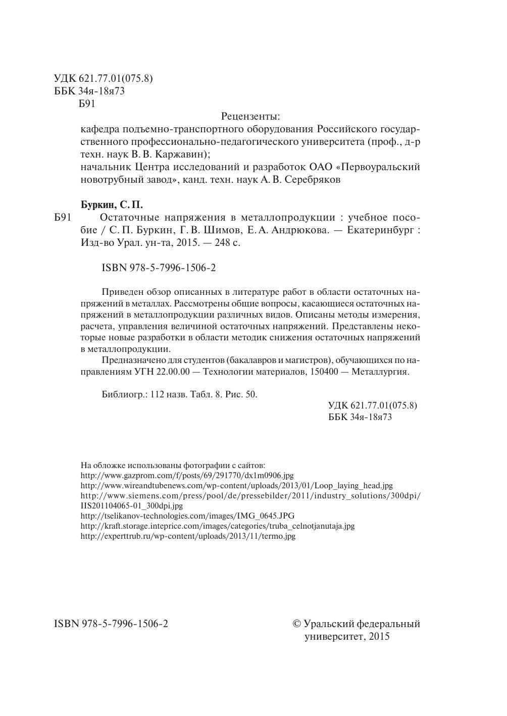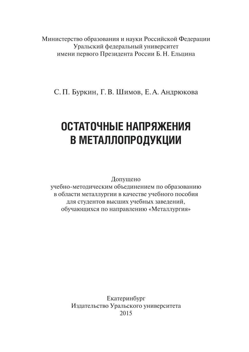 Приведен обзор описанных в литературе работ в области остаточных напряжений в металлах. Рассмотрены общие вопросы, касающиеся остаточных напряжений в металлопродукции различных видов. Описаны методы измерения, расчета, управления величиной остаточных напряжений. Представлены некоторые новые разработки в области методик снижения остаточных напряжений в металлопродукции. Предназначено для студентов (бакалавров и магистров), обучающихся по направлениям УГН 22.00.00 — Технологии материалов, 150400 — Металлургия.