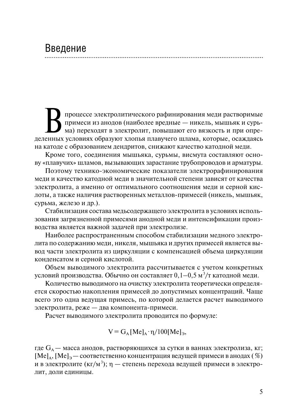 В книге приведены сведения, характеризующие существующие технологии переработки отработанного электролита, выводимого из процесса электролитического рафинирования меди. Дано описание химического поведения и приведены основные физико-химические характеристики процессов растворения меди в сернокислых растворах, очистки сернокислых растворов от мышьяка, электроэкстракциии меди из никелевых сернокислых растворов, вакуум-кристаллизации насыщенных растворов сульфата меди и никеля сернокислого с получением товарной продукции, соответствующей требованиям ГОСТов. Предоставлено описание работы основного оборудования, задействованного в производстве солей сульфата меди и никеля сернокислого. Рассмотрены классические технологии переработки отработанного электролита и извлечения меди и никеля на ОАО «Уралэлектромедь». Предназначено для студентов, обучающихся по программам «Современные технологии получения цветных металлов» и «Гидрометаллургические технологии переработки техногенных и вторичных ресурсов».