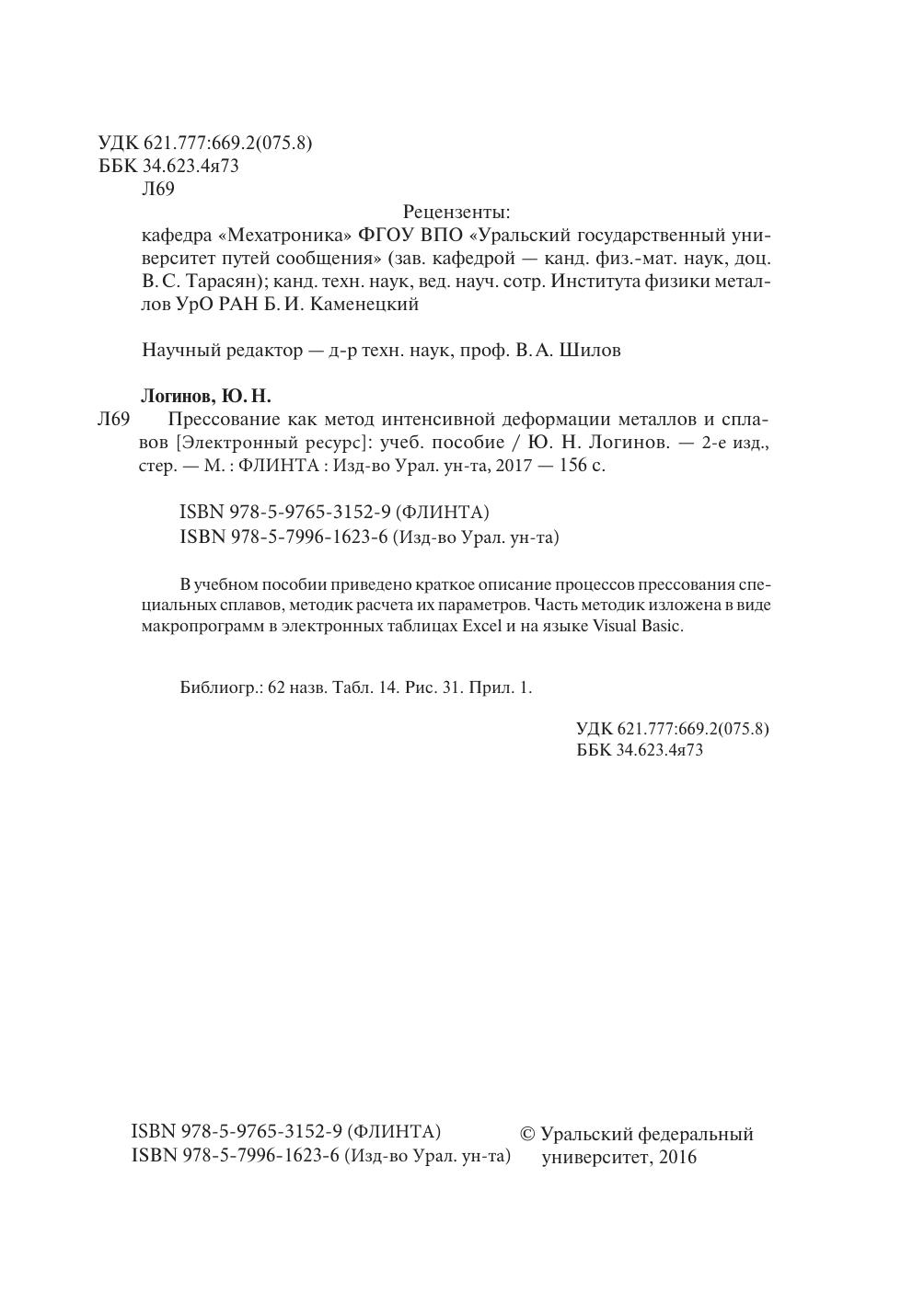 В учебном пособии приведено краткое описание процессов прессования специальных сплавов, методик расчета их параметров. Часть методик изложена в виде