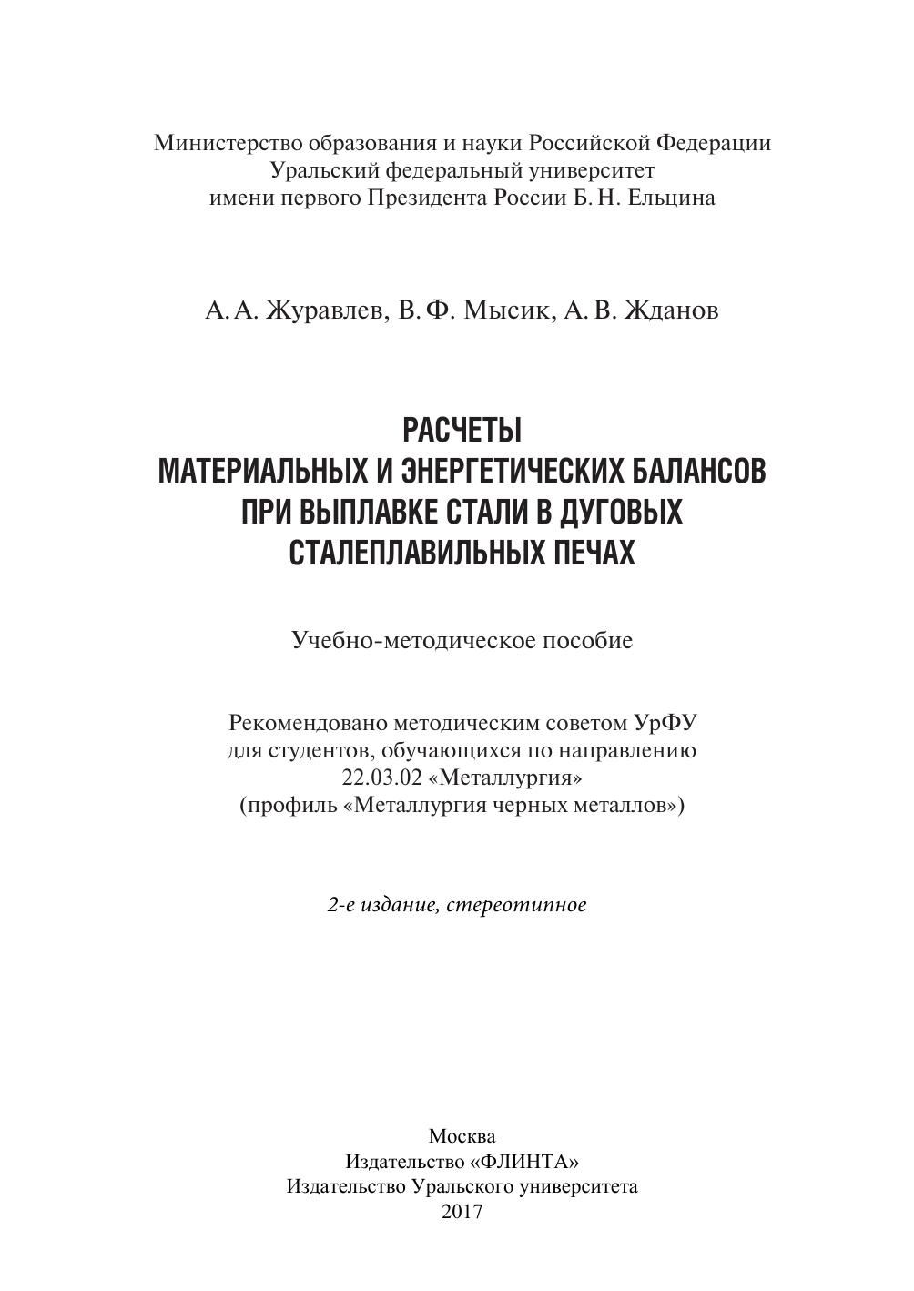 расчетам материальных и энергетических балансов при выплавке стали в дуговых