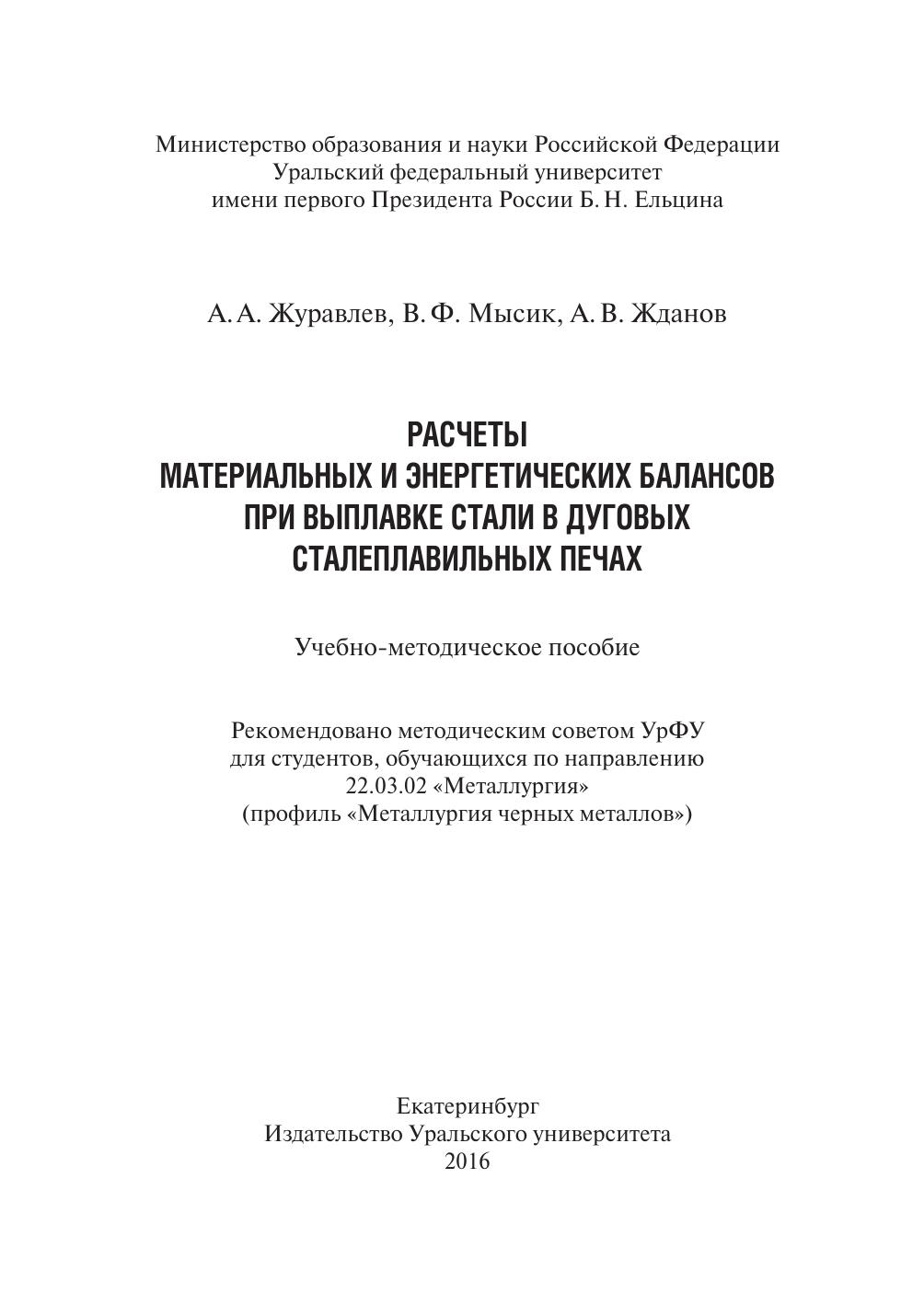 Расчеты материальных и энергетических балансов при выплавке стали в дуговых сталеплавильных печах: учебно-методическое пособие