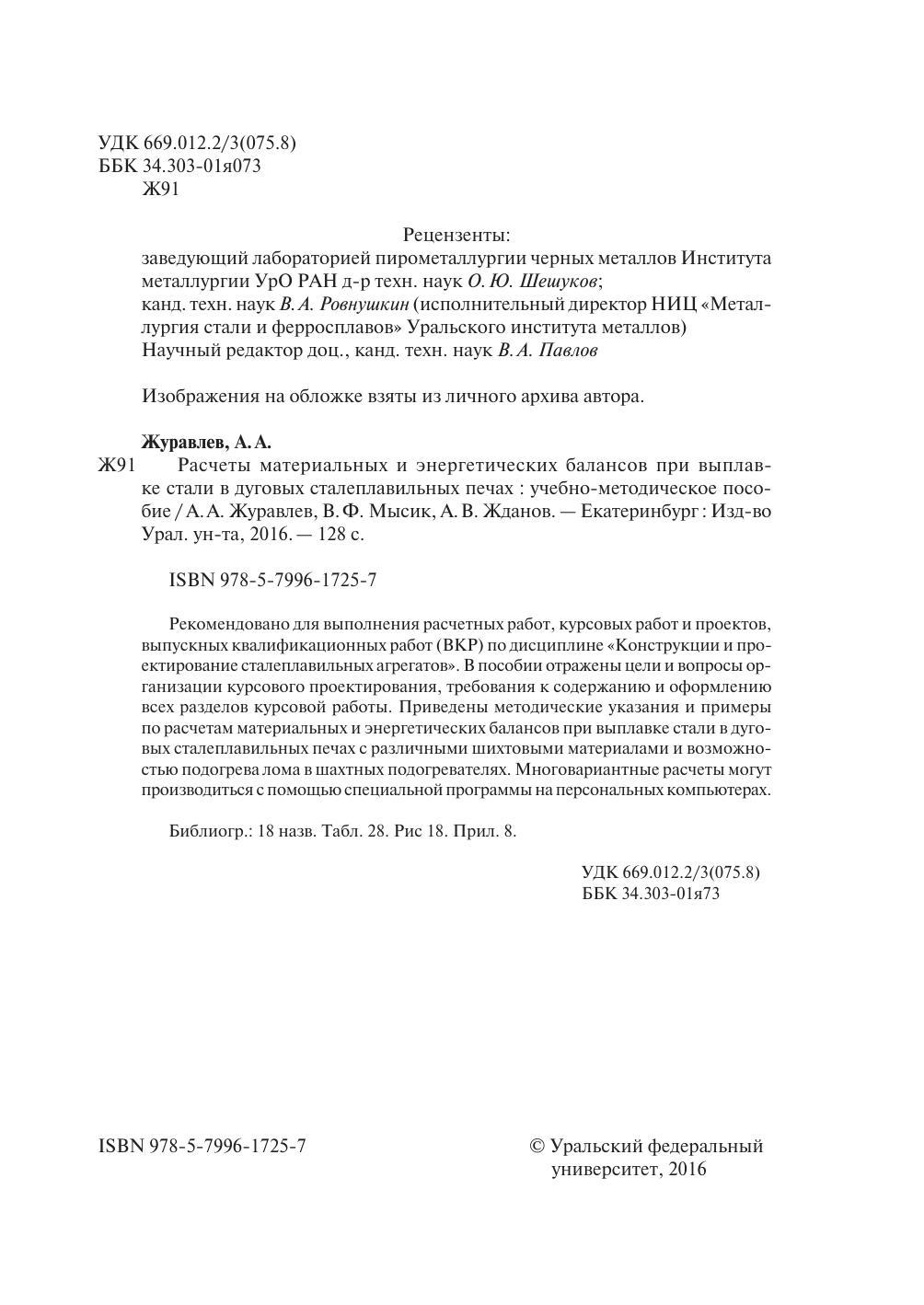 Рекомендовано для выполнения расчетных работ, курсовых работ и проектов, выпускных квалификационных работ (ВКР) по дисциплине «Конструкции и проектирование сталеплавильных агрегатов». В пособии отражены цели и вопросы организации курсового проектирования, требования к содержанию и оформлению всех разделов курсовой работы. Приведены методические указания и примеры по расчетам материальных и энергетических балансов при выплавке стали в дуговых сталеплавильных печах с различными шихтовыми материалами и возможностью подогрева лома в шахтных подогревателях. Многовариантные расчеты могут производиться с помощью специальной программы на персональных компьютерах.