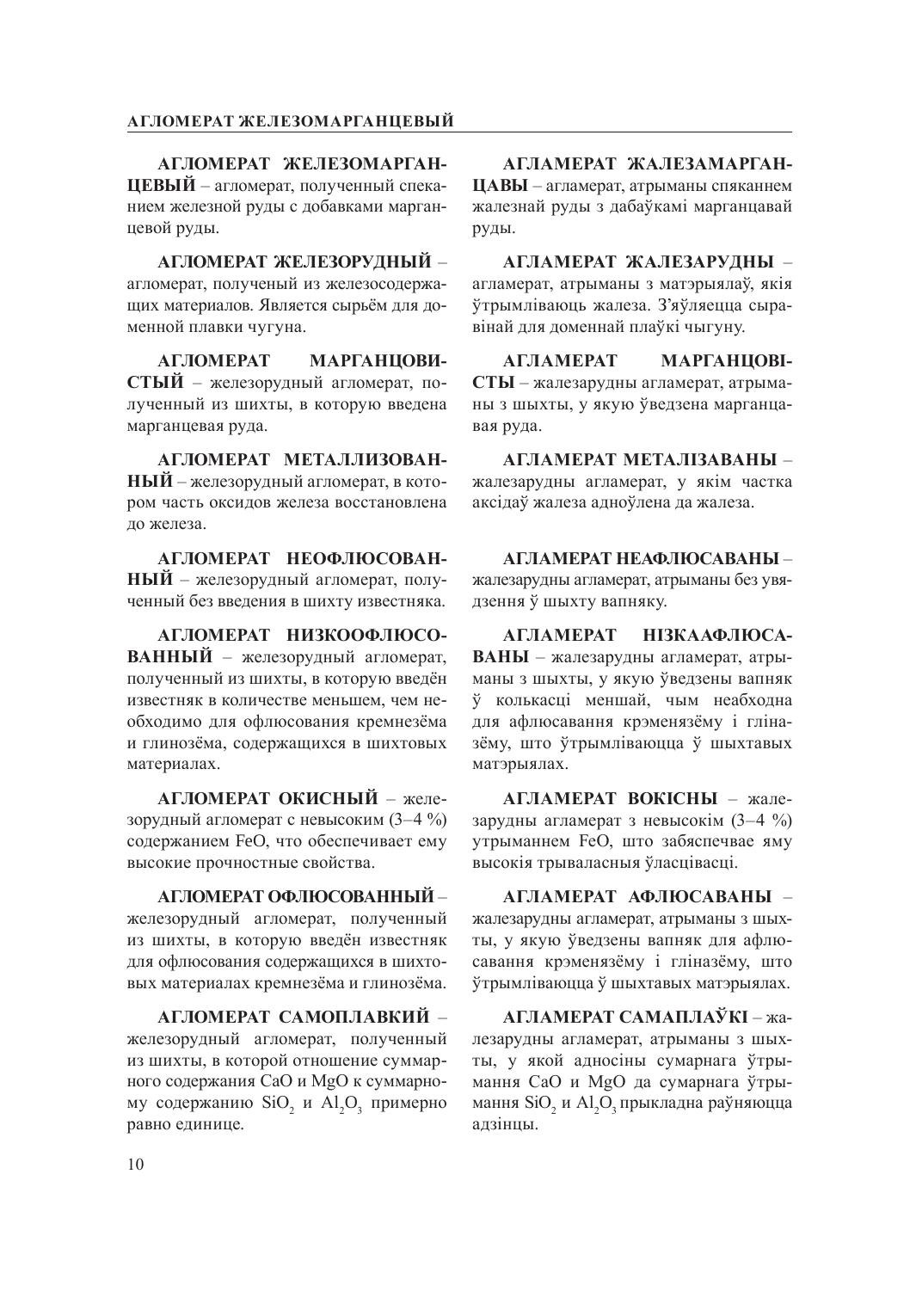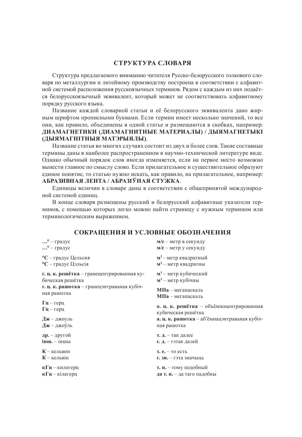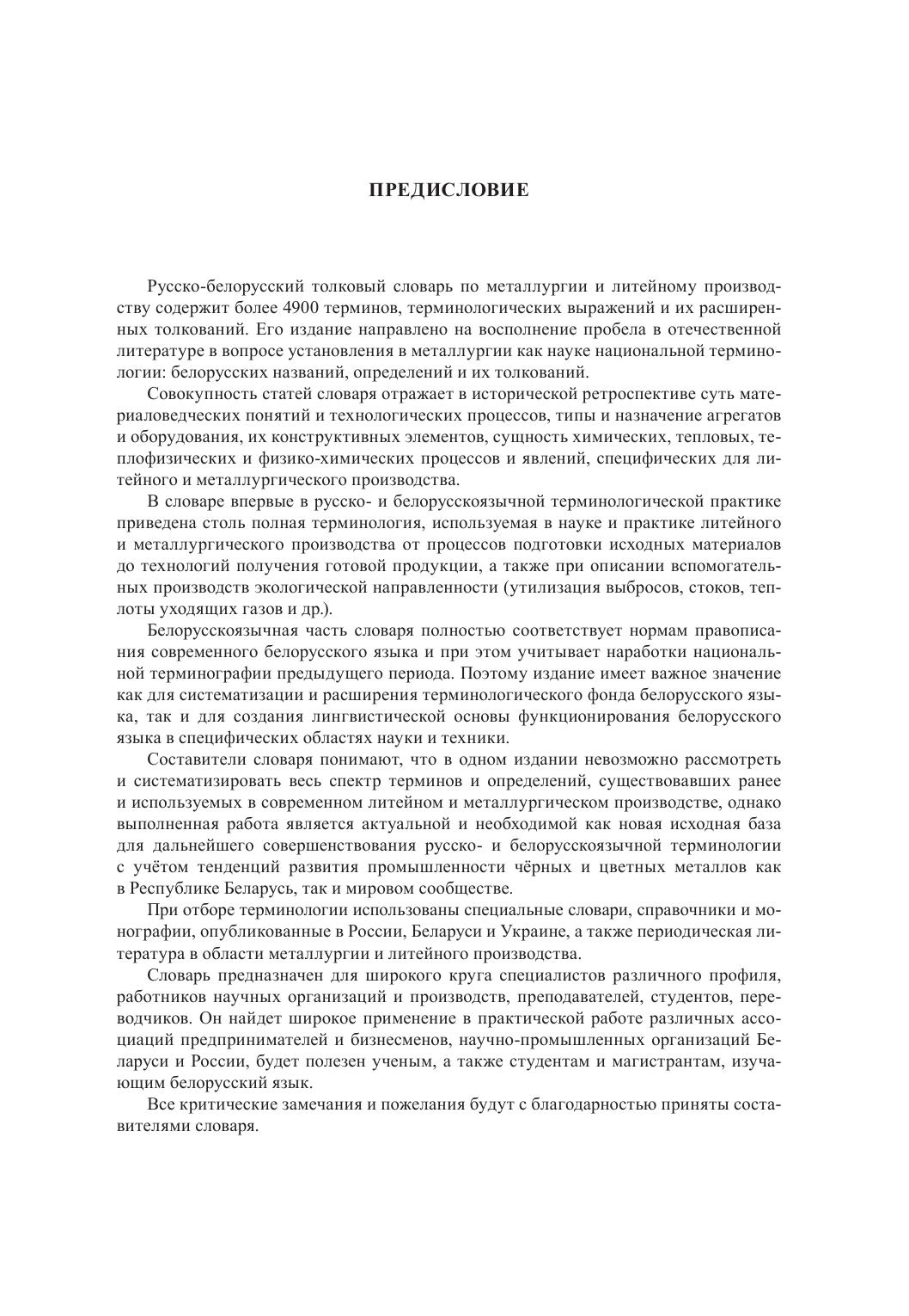 Словарь содержит основные термины, терминологические выражения и их расширенные определения в области металлургии и литейного производства и восполняет пробел в отечественной литературе в вопросе установления в металлургии как науке национальной терминологии (белорусских названий, определений и их толкований).