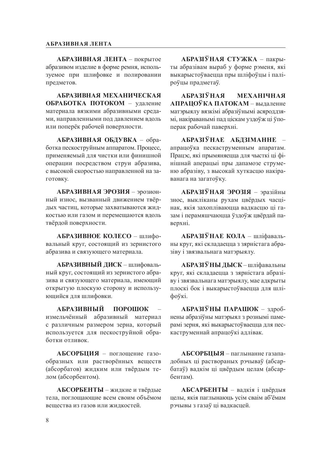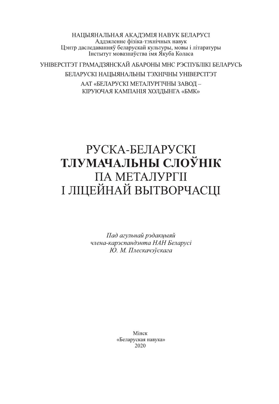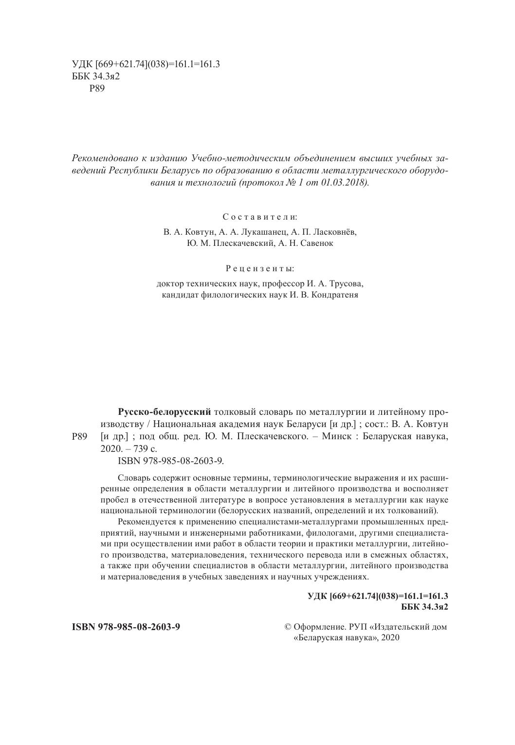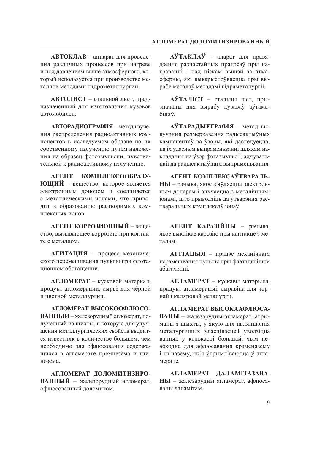 Словарь содержит основные термины, терминологические выражения и их расширенные определения в области металлургии и литейного производства и восполняет пробел в отечественной литературе в вопросе установления в металлургии как науке национальной терминологии (белорусских названий, определений и их толкований).