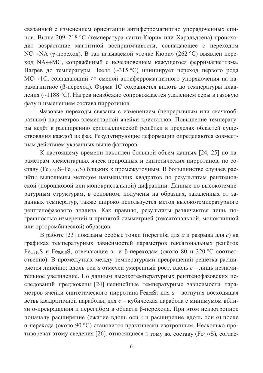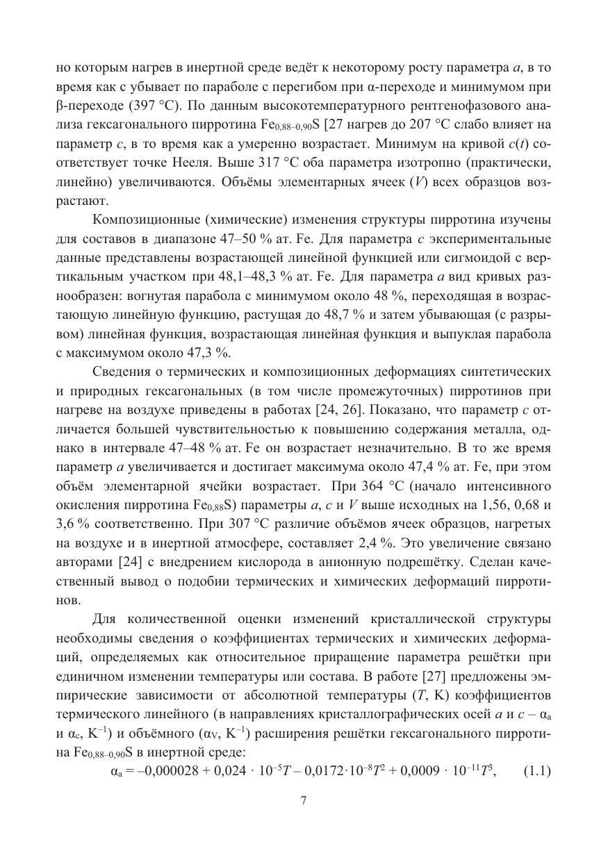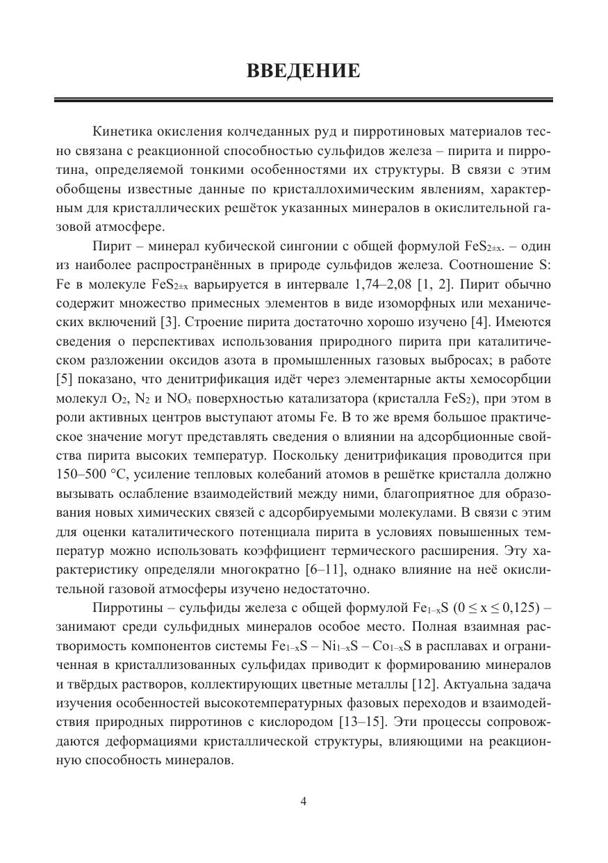 Показаны особенности высокотемпературных фазовых переходов и взаимодействия природных пирротинов с кислородом. Рассматривается кинетика окисления колчеданных руд и пирротиновых материалов, которая тесно связана с реакционной способностью сульфидов железа – пирита и пирротина, определяемой тонкими особенностями их структуры. Обобщены известные данные по кристаллохимическим явлениям, характерным для кристаллических решёток указанных минералов в окислительной газовой атмосфере.